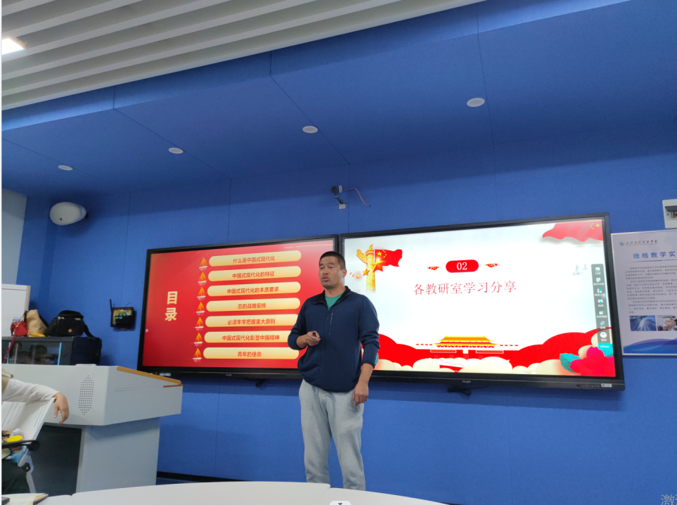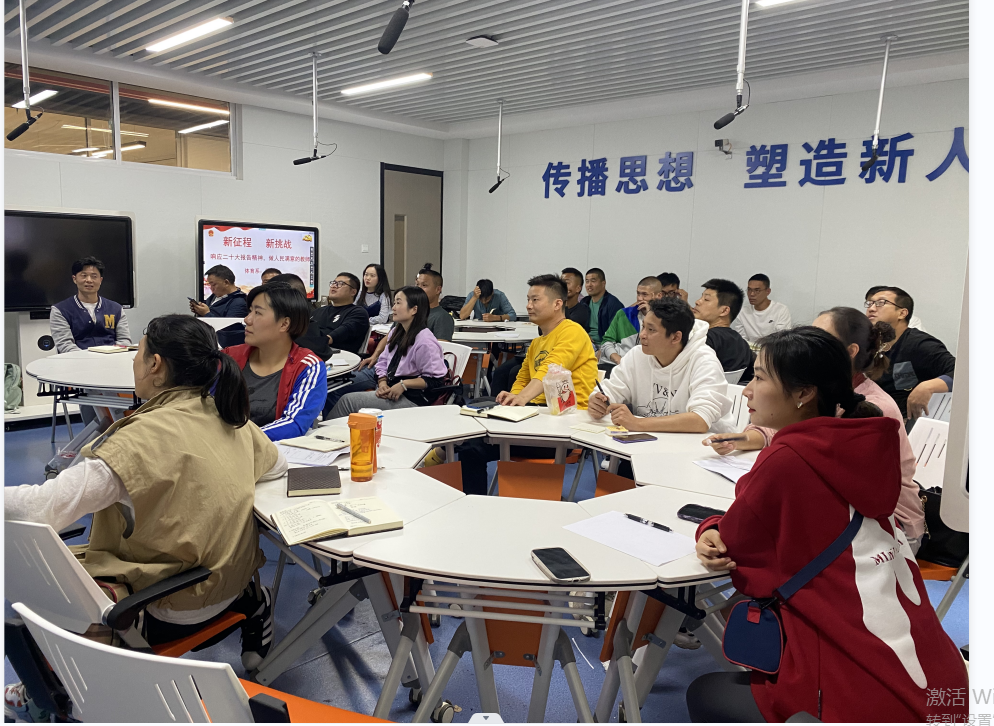 112办公室刘庆老师谈到作为一名体育教师,学习了党的二十大报告后,深感自己身上的责任重大。学校体育教育始终是把“健康第一”放在首位的,学生的健康就是我们体育教师的使命。它关乎着学生是否能成为一门合格应用型人才。他要在今后的体育教学中思考多种科学的教学方式让学生消除害怕体育的心理,在今后的教学科研中将如何提高学生的耐力素质作为研究对象,让学生成为身体健康、精神充沛,体格健硕的能堪当民族复兴大任的青年。