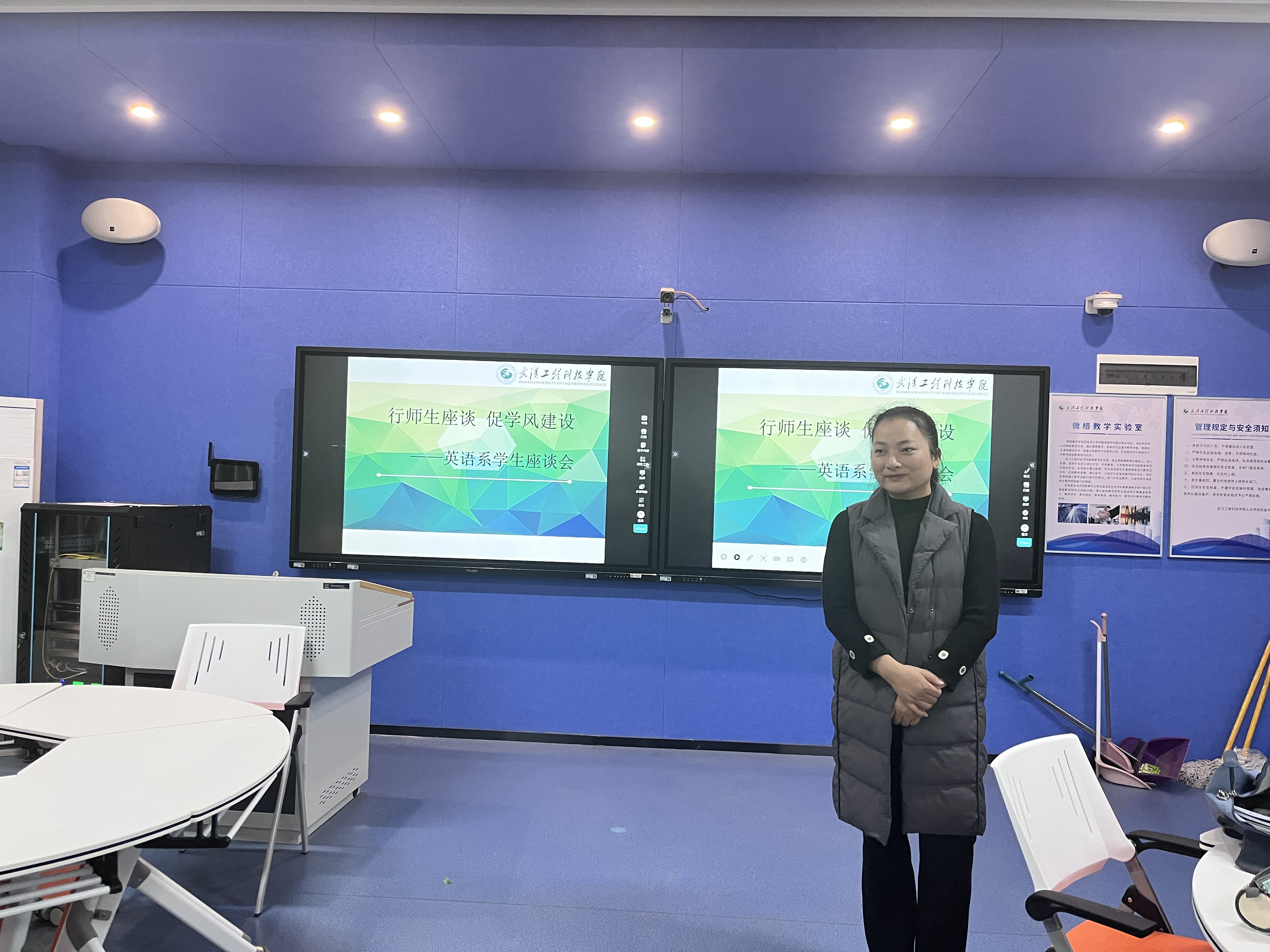 座谈会上孙川慧主任介绍了本次师生座谈会的意义:了解各班学生学习状况,解答学生专业学习中的困惑,听取学生对学校教学安排的相关建议,同时提出要求促进专业学风建设。