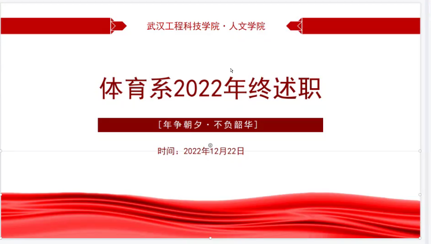 会议伊始,宋主任做动员、强调年终述职的工作的相关要求,体育系这一年取得的相关成果很多,离不开每位老师的辛勤付出,今天请大家把相关工作展示出来,按办公室老师逐个展示,每人3分钟。