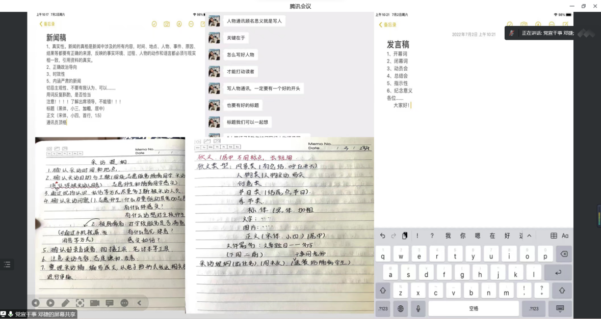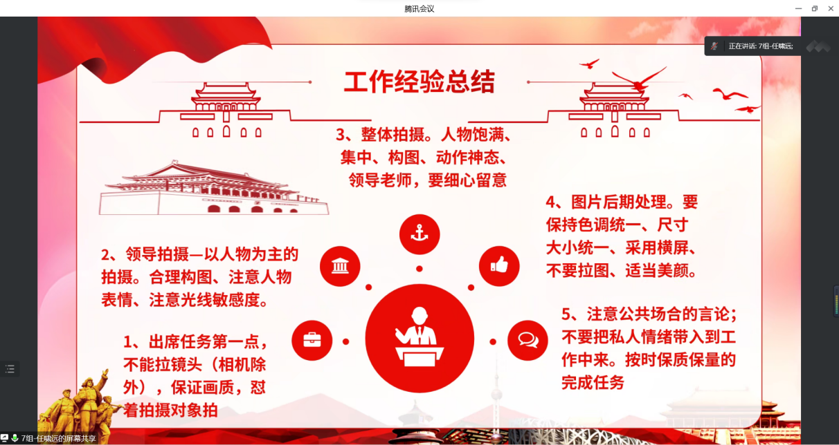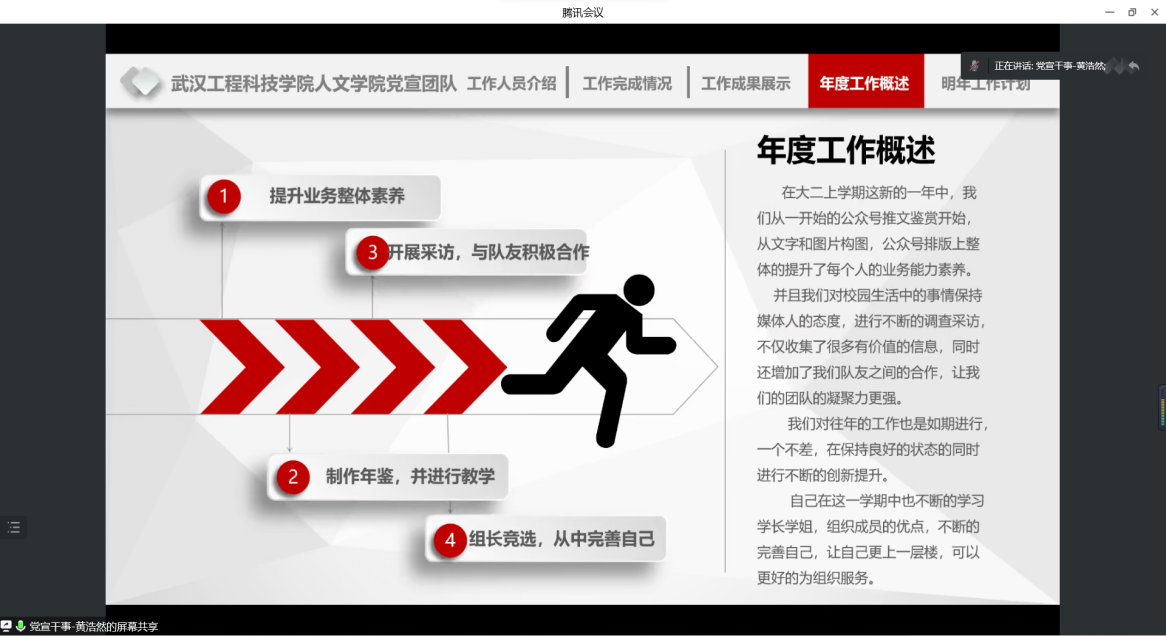 党宣助理贾维凤、党宣干事周思雨针对党宣干事们的汇报展示进行了点评,一一回答了团队成员们的问题及疑惑,并再次肯定了团队每一位成员的自我优势和独特个性。
