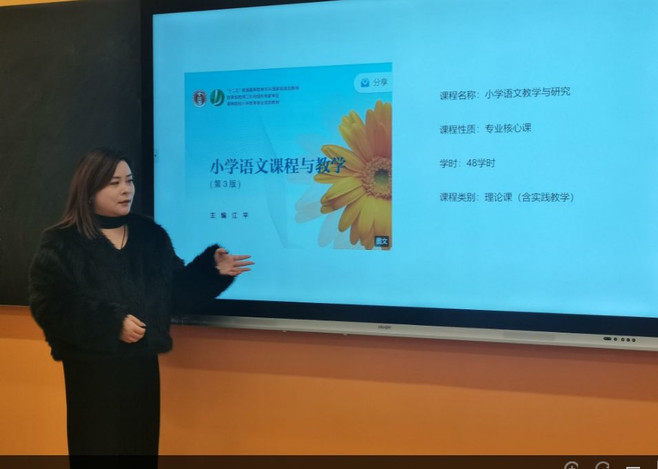 刘伟伟老师对《小学语文课程与教学》这门课程的教学设计进行了整体的阐述并提出了自己对这门课当中实践学时的看法。