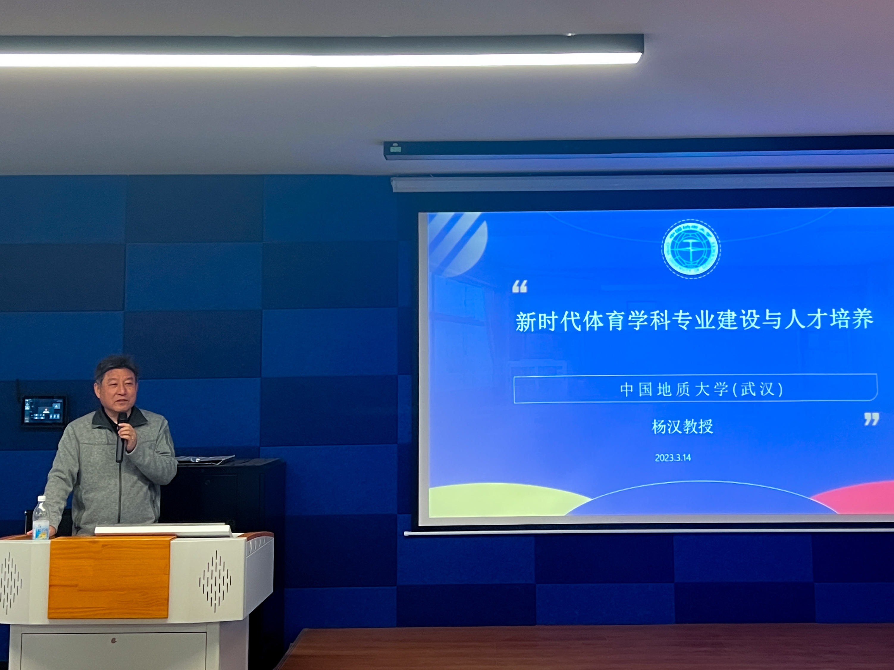 杨伦对杨汉的到来表示了热烈欢迎,他强调了本次讲座对于体育专业的发展有着建设性作用,要求在场师生认真学习,深入思考,努力践行。杨伦对学院体育系学子们在学业、生活以及未来规划等方面提出了要求和建议,他希望同学们要传承女排精神,弘扬奥运精神,做到珍惜青春时光,胸怀家国理想,争做时代新人。
