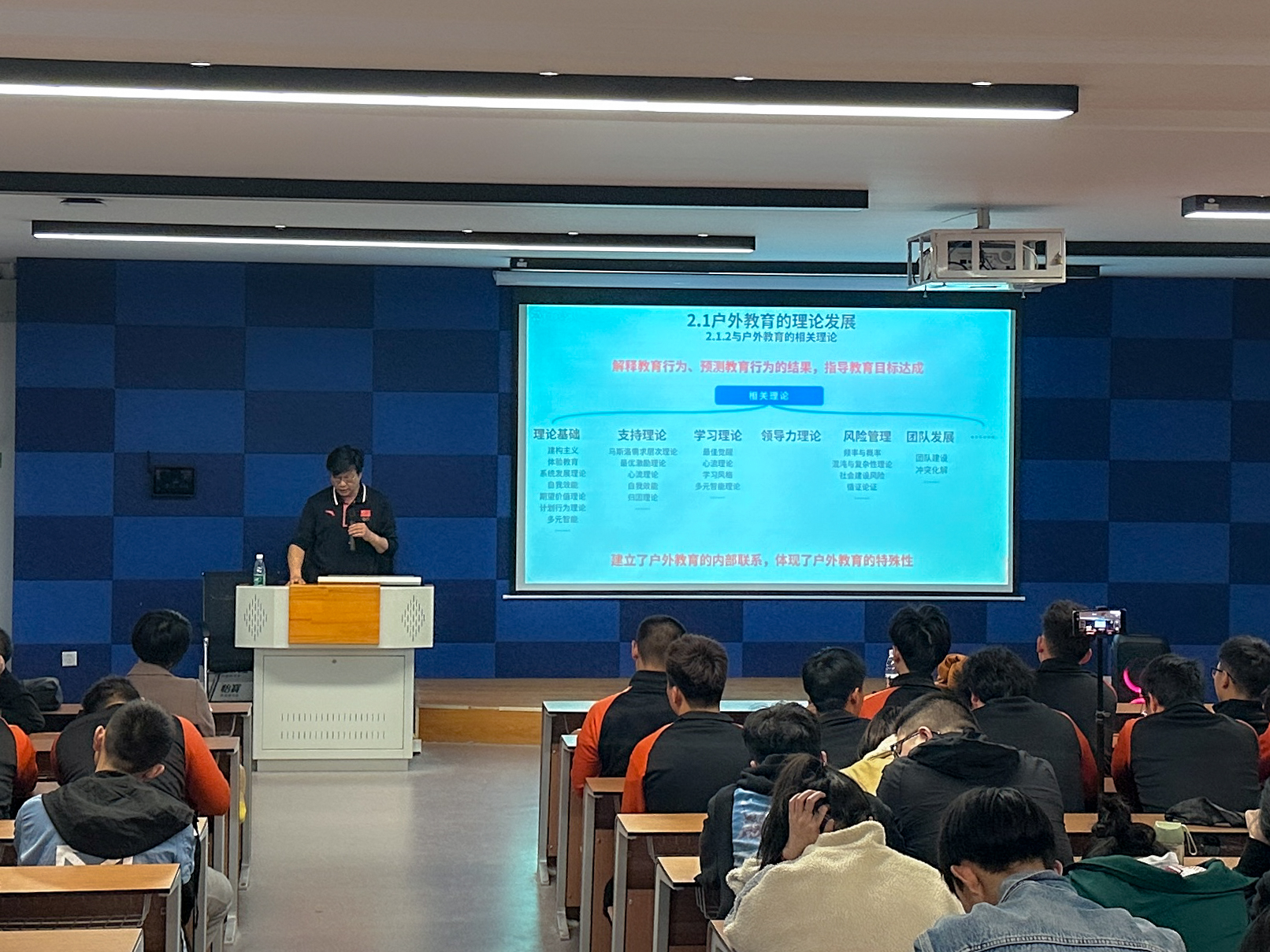 会上,杨汉主要围绕“新时代体育发展政策与环境”“户外体育专业人才的社会需求”“大学教育的学科、专业、课程建设”以及“社会体育专业建设(户外)与人才培养”四个方面进行了详细的分析和指导。杨汉说道:“现体育呈现蓬勃发展,已成为五大幸福产业和六大消费领域的重要内容。”他提出高校体育教育要深刻把握好学科建设与人才培养之间的关系,努力“建成支点,走在前列,谱写新篇”适应社会的发展,培养高素质专业应用型人才。