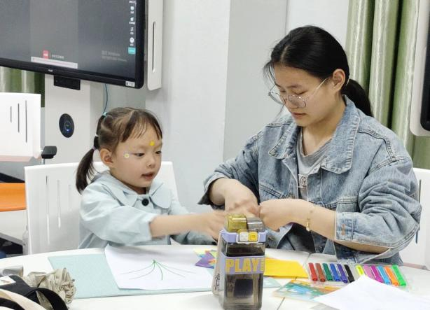 小朋友们认认真真观看了很多遍制作创意手捧花的视频,之后小老师们便带着小朋友一起进行创意手捧花创作,小朋友们拿出了自己准备好的彩色卡纸、彩笔、胶水。
