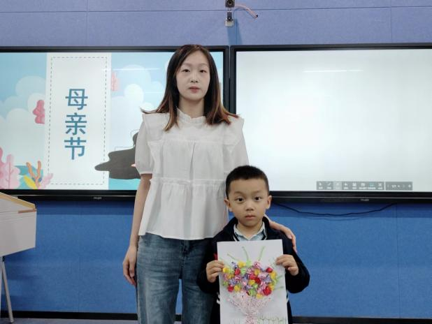 小朋友们根据自己的喜爱用了各种不同颜色的卡纸搭配出一捧她们眼中要送给妈妈的最漂亮花束。