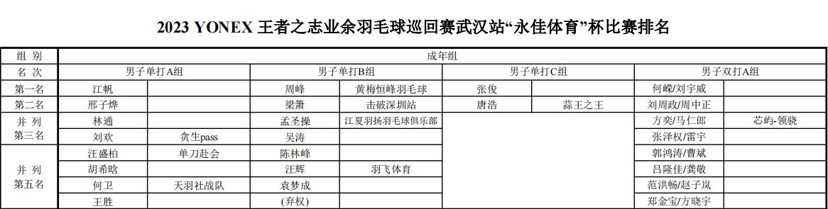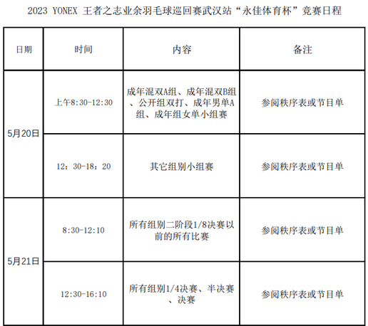 本网讯(通讯员 徐娅妮 唐伟)5月20日,2023 YONEX王者之志业余羽毛球巡回赛武汉站“永佳体育”杯如约而至,比赛一宣布就吸引了众多羽毛球爱好者的关注,报名通道开放两天便抢完了1500张参赛资格的名额。同时本次全国巡回赛共有20站,分别在上海,广州,杭州,武汉,沈阳等城市举办,每站比赛的冠军将于12月在上海的总决赛总决出年度王者。同时本项比赛也纳入了中国羽协全民健身积分赛,选手们还能获得属于自己的积分。