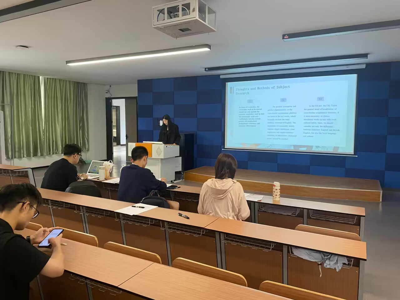 参加答辩的同学早已准备就绪,他们在答辩前都经过了论文开题、中期检查、最终论文审查、论文查重等几个阶段精心的准备。答辩主要分为两个环节,第一个环节是学生通过PPT针对自己的毕业论文进行3-5分钟汇报。在汇报环节,同学们展示了自己精心准备的毕业论文研究成果,态度认真,阐述准确。第二个环节是由答辩老师根据学生的论文及讲解内容进行提问,学生解答。答辩老师秉着严谨细致、认真负责的学术态度对毕业论文进行了全面的评审,并提出修改的建议,帮助学生进一步完善毕业论文。此次论文答辩给同学们提供了一个实战性的平台,考验了同学们的胆量与魄力,师生之间彼此交换了想法。