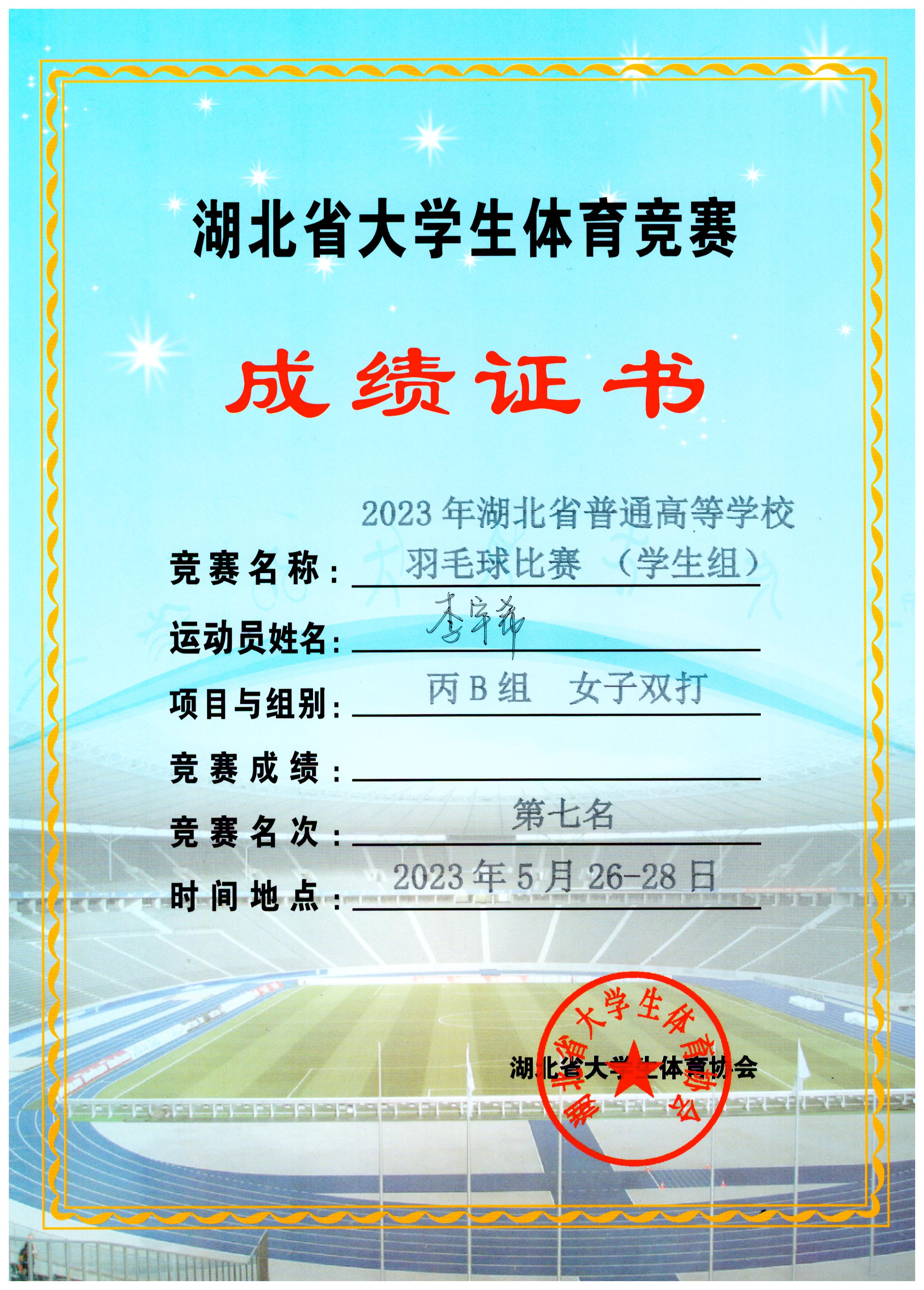 代表学校出战体育院校组女双项目是张文静和李宇希,比赛过程中,两位同学克服不利因素,顽强拼搏,最终获得第七名的好成绩。