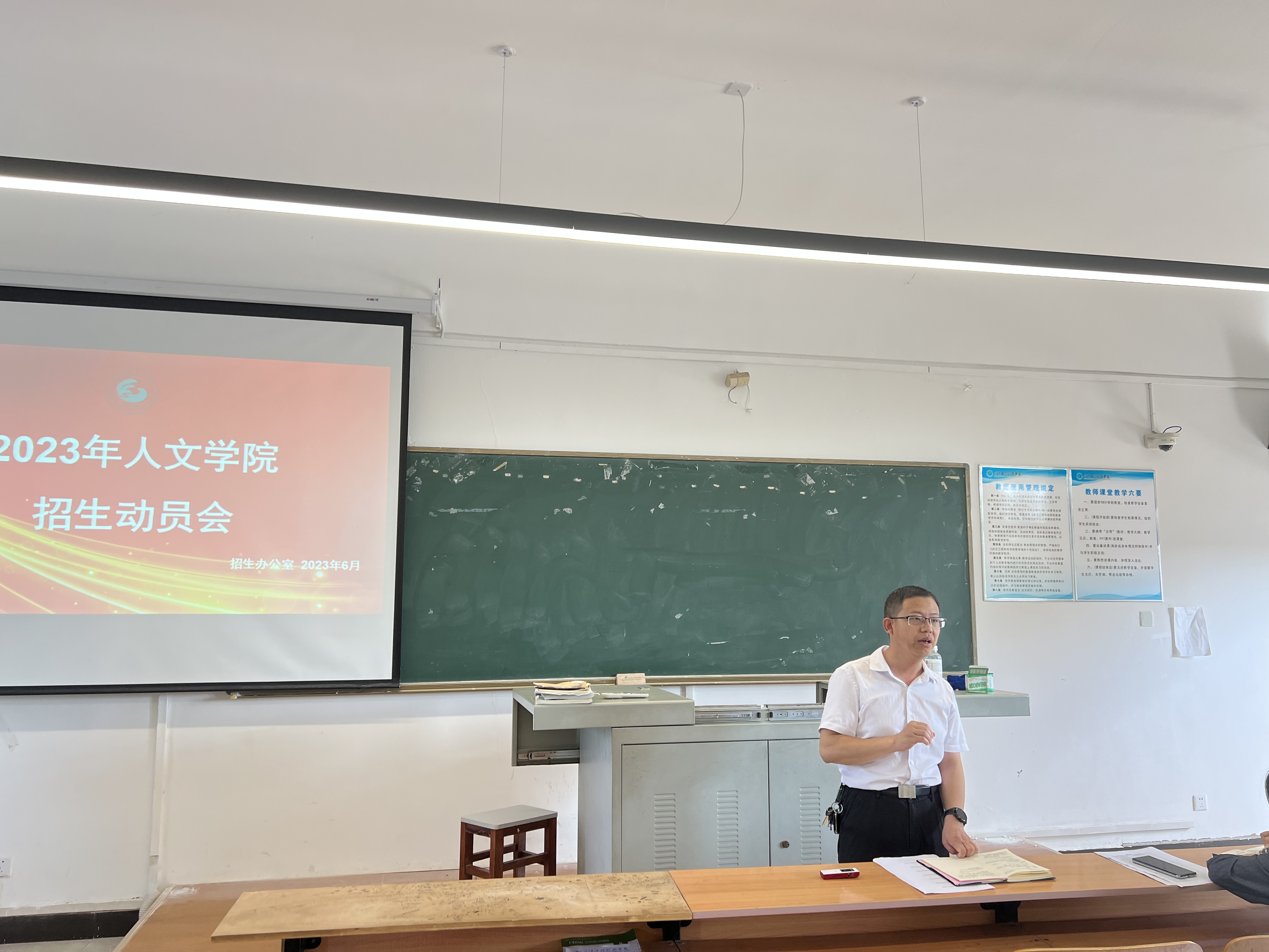 本网讯(通讯员 吴靖)6月7日下午,人文学院召开2023年招生动员工作部署会,宣讲今年招生政策及变化,部署学校招生相关工作。武汉工程科技学院校助赵欢,招生办董维璐老师,人文学院党总支书记李毅出席会议,人文学院全体教职工参加此次会议,会议由李毅主持。