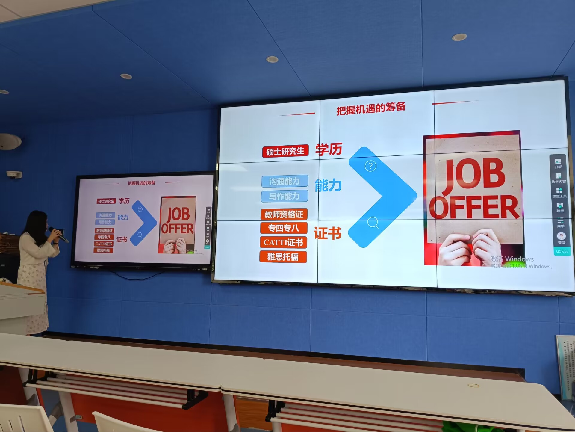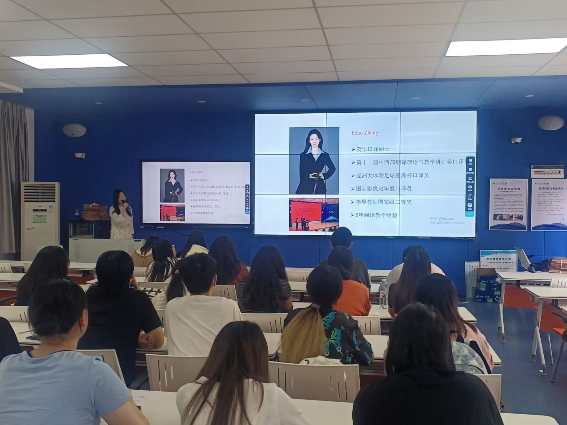 本网讯(通讯员 李忆纯)6月7日下午13时30分,英语系邀请译国译民集团张老师对师生比较关注的翻译行业与考研方向、CATTI备考等相关内容进行线下公益讲座,讲座主题《英专生职业生涯规划》。英语系主任孙川慧主持了本次讲座,英语系教师、20级和21级的同学们参加了本次讲座。