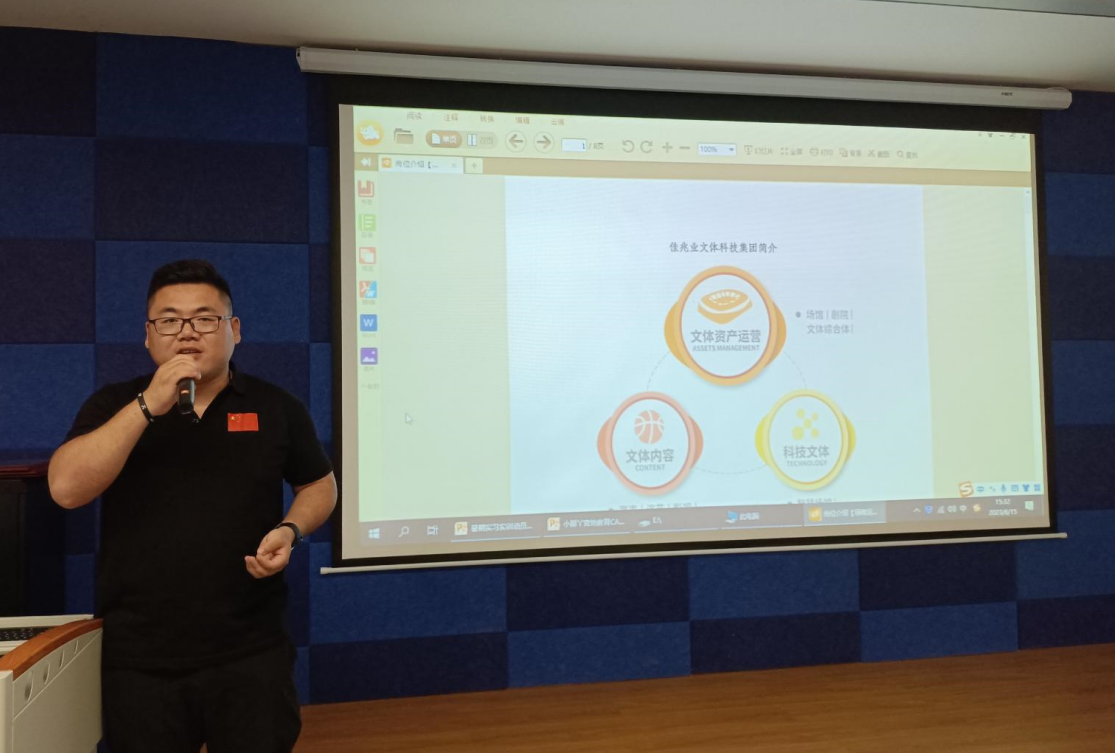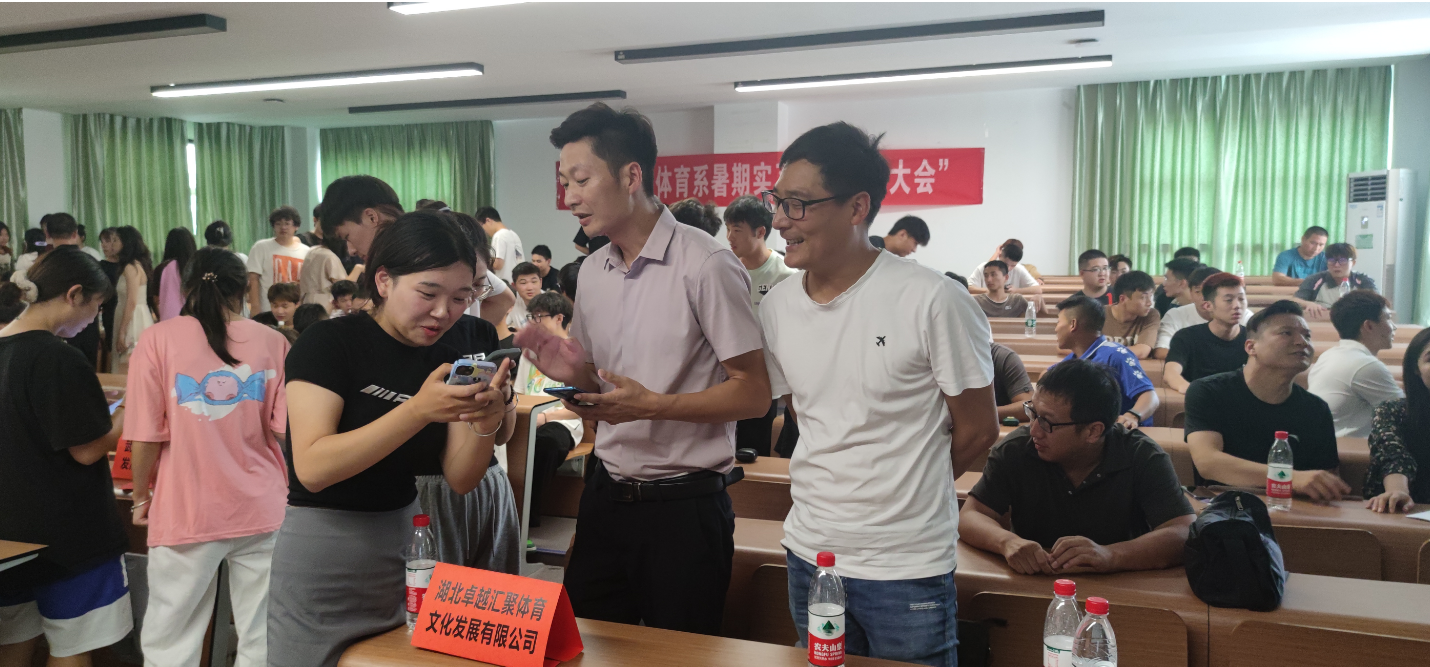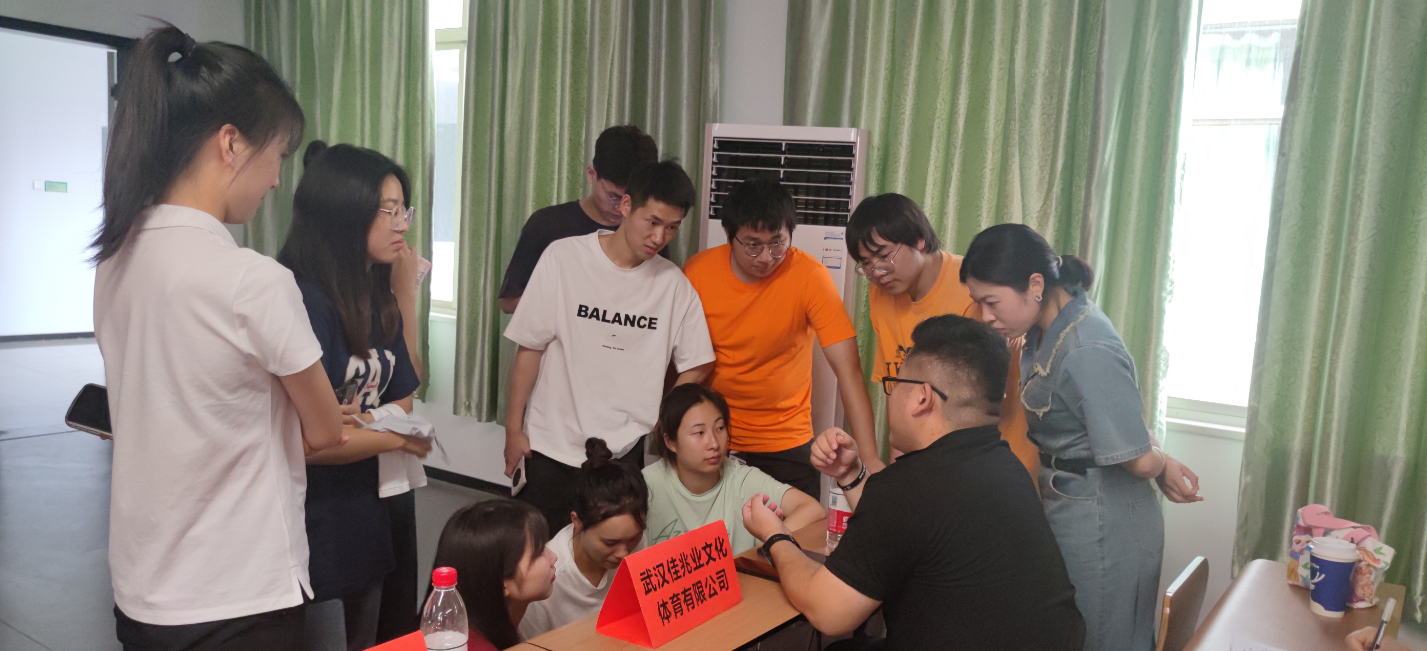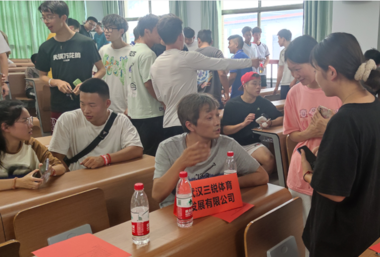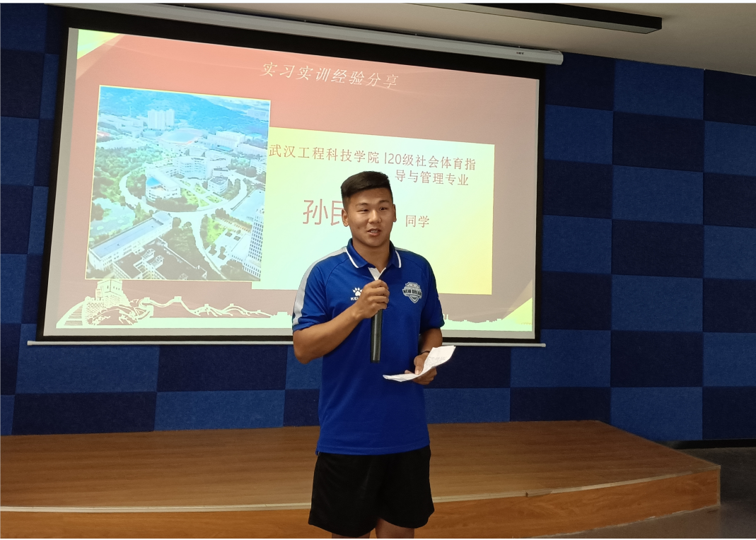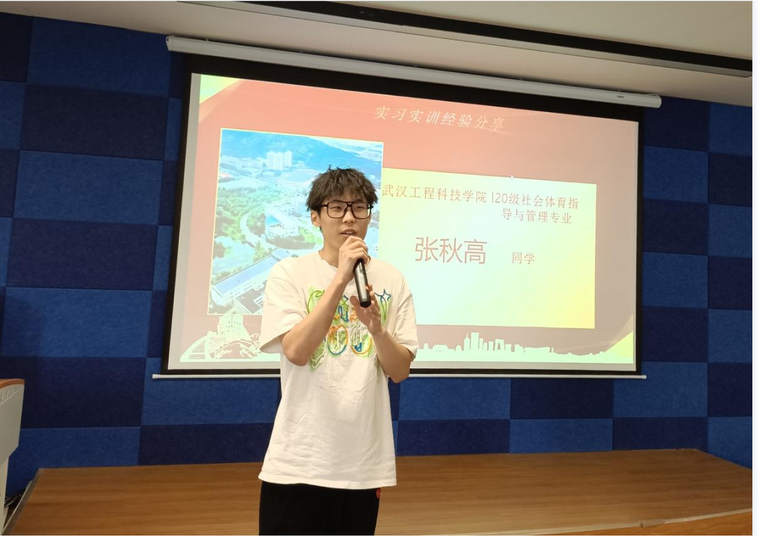 实训学生分享经验环节。在武汉小巨星体育产业有限公司实习的张秋高同学表示,首先加深行业与岗位理解,听一万次别人讲不如自己做一次。其次打磨自己的职业规划,坚定目标或者及时调整方向。最后要有规矩,没有规矩不成方圆,步入社会工作,要遵从社会规律,脚踏实地,虚心请教,踏踏实实的完成好自己的工作。在武汉新梦幻足球俱乐部实习的孙明灶同学表示,机会是留给那些有准备的人的,当机会来临时要有能力接住,去把握住。机遇不会凭空而来,只有当你足够努力的时才会足够幸运,用积极的心态迎接每一次挑战,用不懈的努力达到每一个目标。请相信,生活不会辜负每一个努力的人。