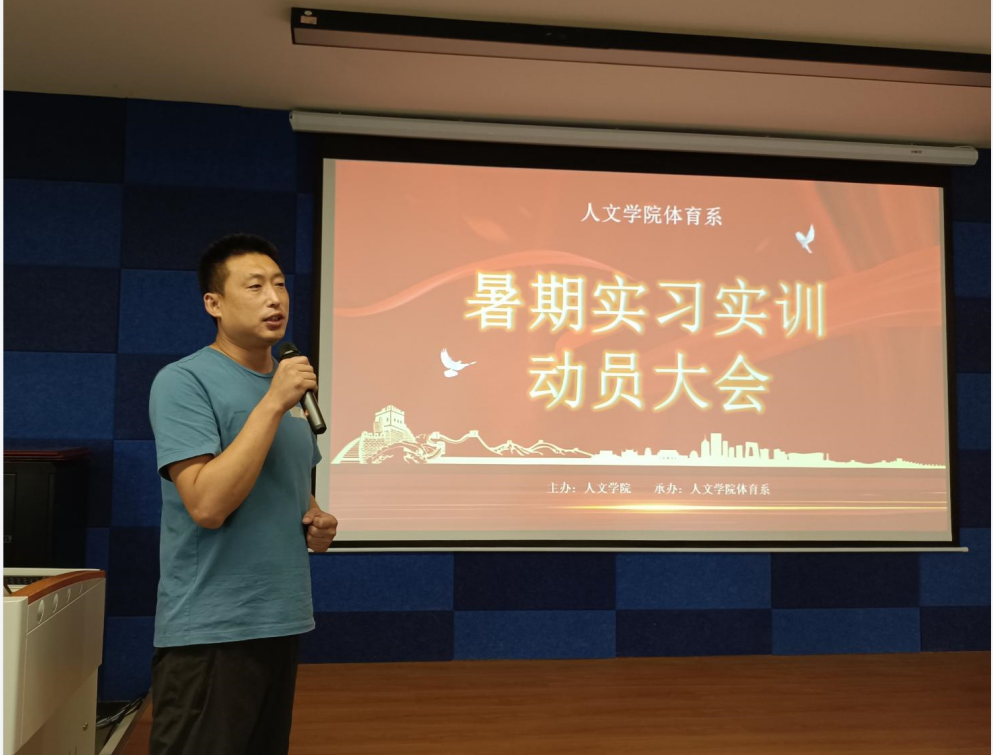 本网讯(通讯员 徐娅妮)6月15日下午,人文学院体育系在一号教学楼215教室组织召开社会体育指导与管理、电子竞技运动与管理两个专业的暑期实习实训动员大会。学校党委副书记、校长助理唐军国,人文学院院长吴亚林,党总支书记李毅,实践教学副院长郭生鼎,体育系主任宋英,公体教学部主任易鹏,10家企业及校企合作单位的负责人出席了会议,体育系教师及学生代表参加了本次会议。会议由体育系教师杨径主持。