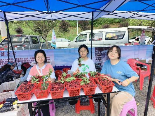 由于杨梅时令性强,为了减少中间环节、畅通销售渠道,虽然基地主要以游客入园采摘、批量采购销售鲜果为主,但杨梅的周期极短,一定要及时卖出,不然全都坏在果园里了。为此,团队成员也积极为梨树垭村的杨梅做推广,在学习强国、湖北日报、抖音、公众号均有文章发布。杨梅进入成熟期后,每天有100多名游客慕名而来。与此同时,该村也通过网络直播等形式进行线上销售,我们团队的成员也参与了梨树垭村的直播,与之进行互动。让全国各地的消费者能够品尝到梨树垭村的杨梅。让梨树垭村的杨梅走出咸丰,走出恩施!