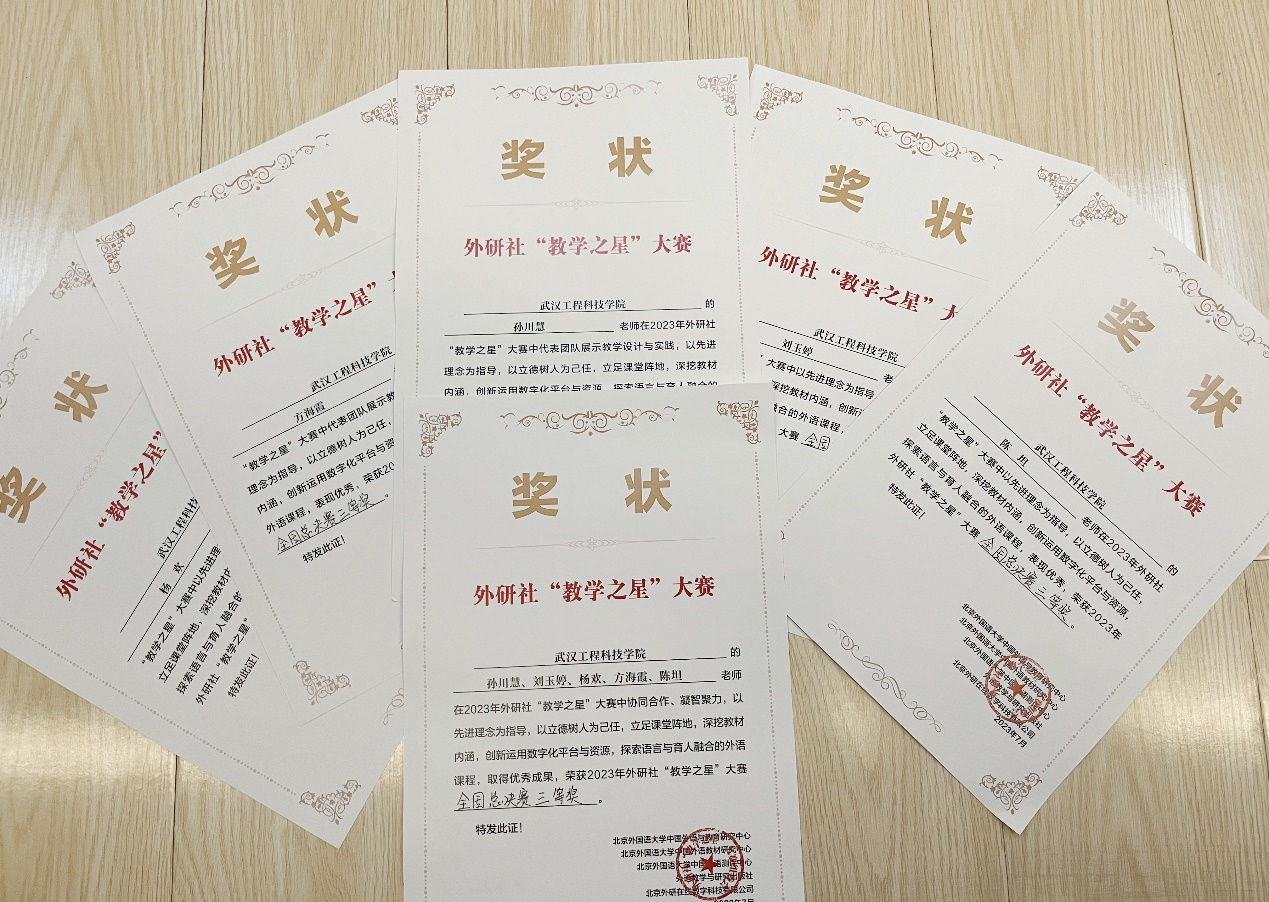 本网讯(通讯员 杨欢)2023年七月底至八月初,外研社“教学之星”大赛全国半决赛在西安举行。外研社“教学之星”大赛在全国高校外语教育领域广受认可,本次大赛积极响应外语教育数字化发展趋势,赛题为外语教材的有效使用:数字赋能,创新育人。经过激烈角逐,由我校英语系孙川慧、刘玉婷、杨欢、方海霞、陈坦老师组成的参赛团队获得半决赛二等奖,最终获全国总决赛三等奖。