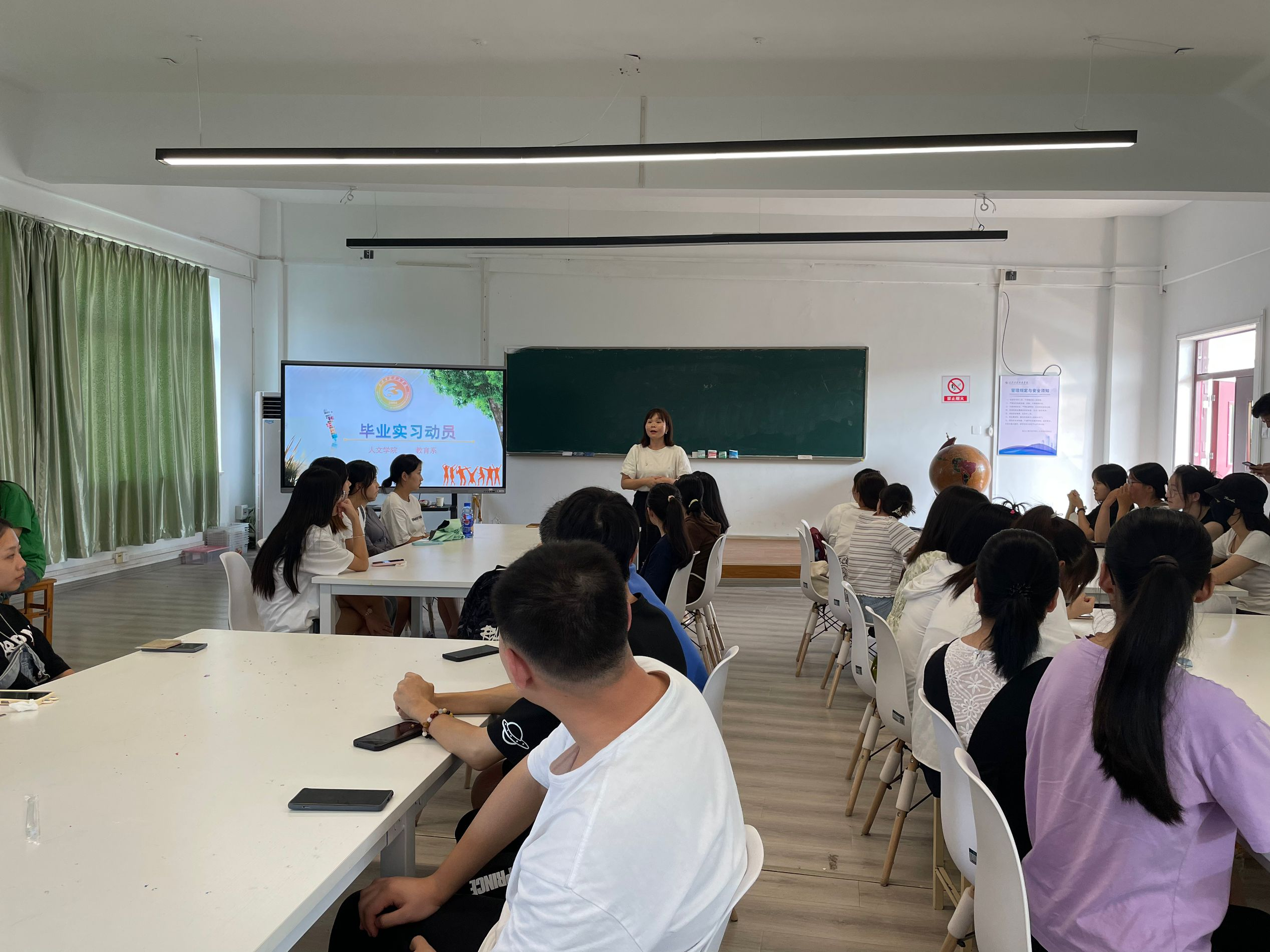 汝利娜最后从实习目的、实习时间、实习任务、考核认定等多方面对本次实习方案进行了详细解读,并表示希望同学们能够高度重视本次实习工作,自觉遵守实习纪律,严格执行实习方案,圆满完成实习任务。