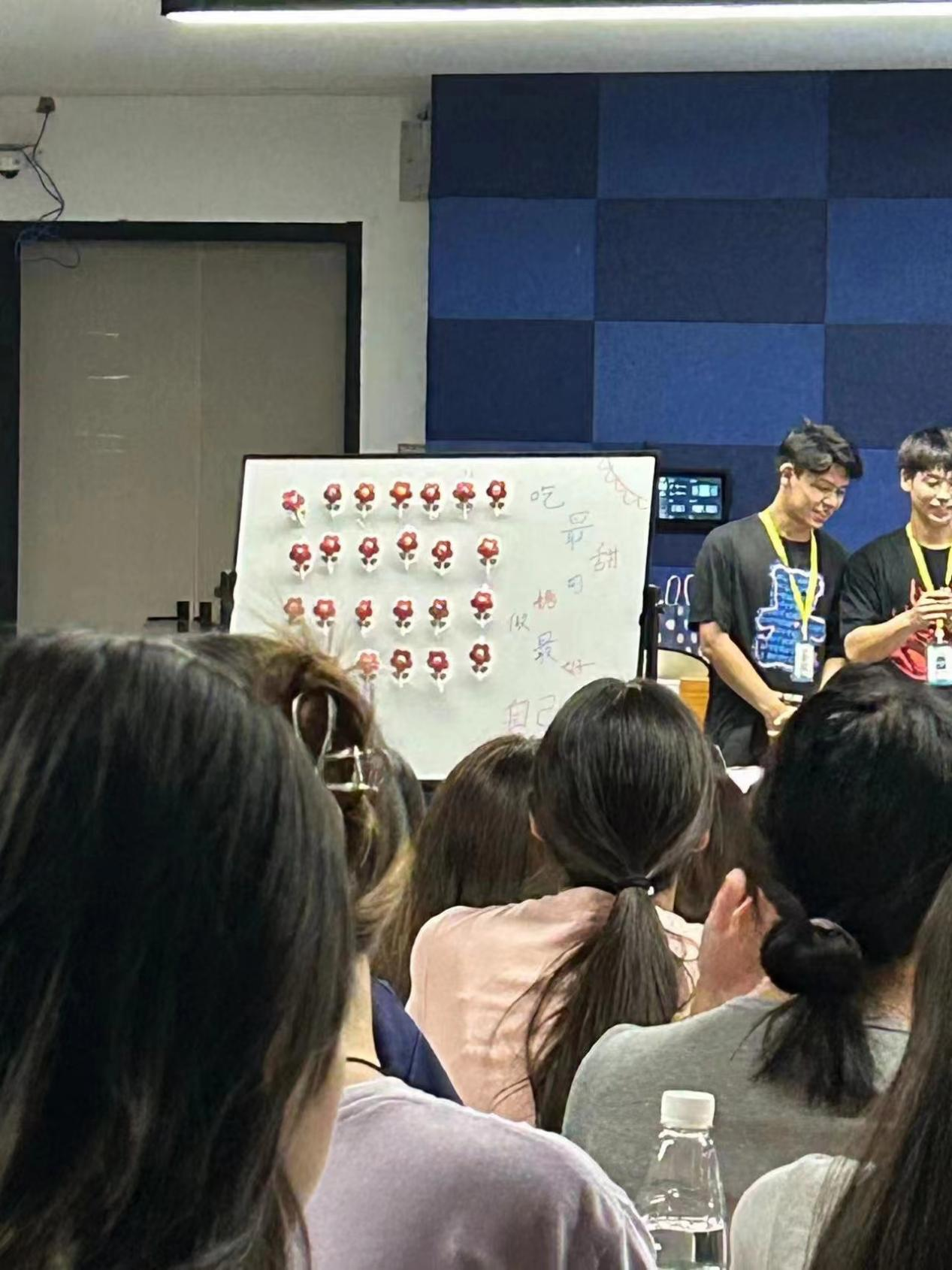 同学们热情洋溢,畅所欲言,大家依次上台自我介绍并分享上大学感受介绍。随后,辅导员带领同学们学习校纪校规,并为新生详细介绍班级的各项规章制度,包括考勤、纪律要求等,强调班集体保持积极向上、团结友爱的环境氛围的重要性。辅导员强调:“大学时光是我们人生中最难能可贵的一段时光,希望大家能够把握好自己人生的方向,明确自己的人生目标,不断向着目标前进,在四年后成为自己想成为的人。”
