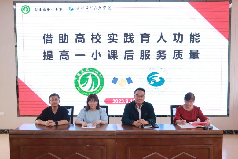 江夏一小在报告厅举行欢迎仪式。我校人文学院党总支书记李毅,副院长吴海燕、郭生鼎,艺术与传媒学院党总支书记卢潘,江夏一小党总支书记辛从飞、校长吴艳霞、副校长任永慧出席会议,江夏一小教师代表、教务处相关人员、学院教师代表及全体志愿者参会。会议由江夏一小副校长高杨主持。