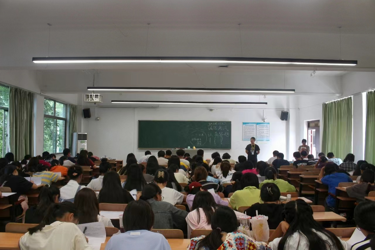 本网讯(通讯员 朱梦婷 敖凌鸿)为深入贯彻立德树人的根本任务,加强新生对学校教育教学秩序及生活秩序的了解,确保新生入学教育有序推进,保障新生各项合法权益,促进新生养成良好的行为规范。9月28日,武汉工程科技学院人文学院于一号教学楼开展了2023级新生《学生手册》考试,武汉工程科技学院人文学院团总支书记郭孟言,新生辅导员及带班学长监考本次考试,学院全体2023级新生参加了本次考试。