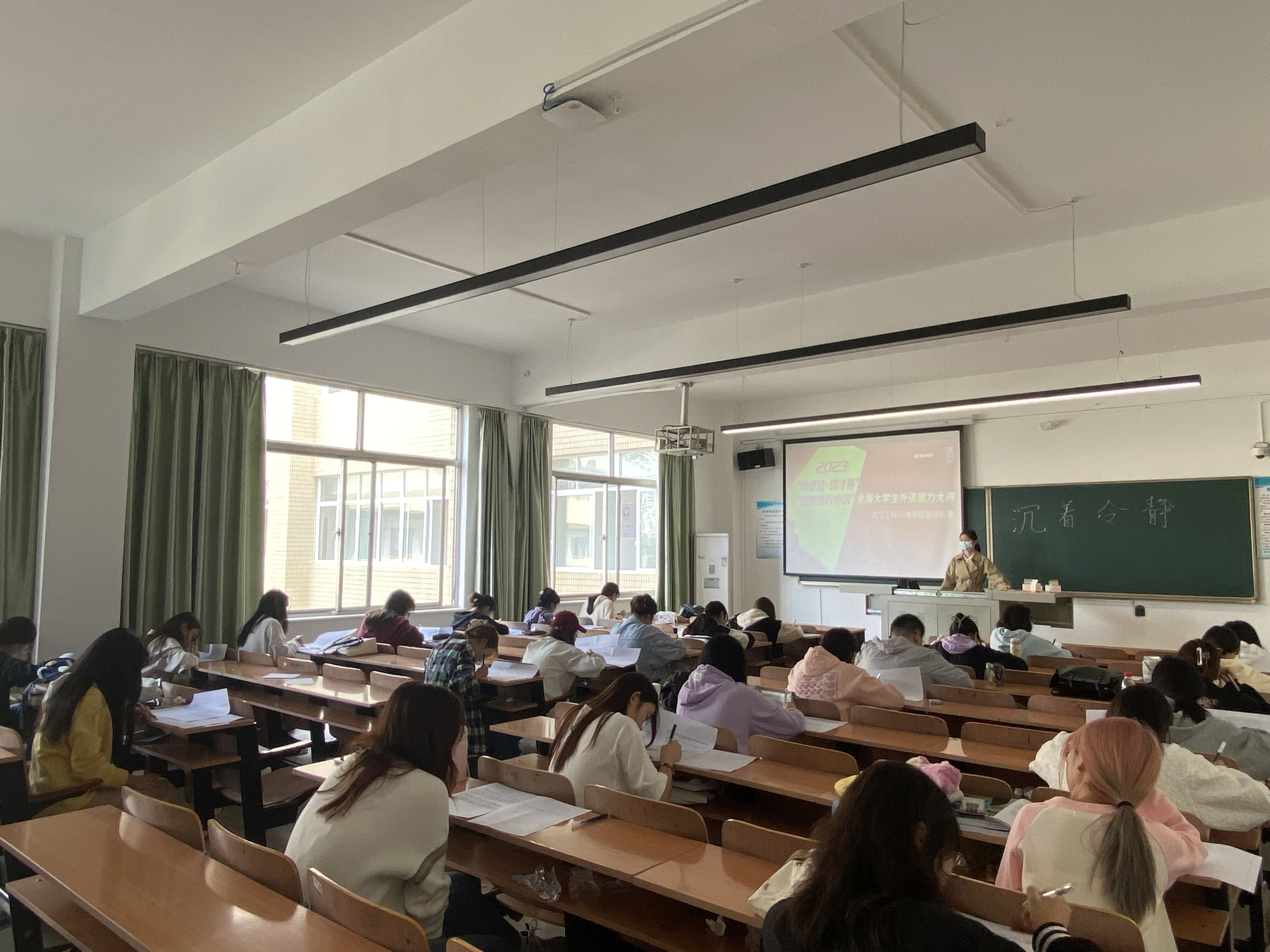 本网讯(通讯员 黄莉 李明臣)金秋十月,桂树飘香,9日下午1点至3点,第一教学楼407教室坐满怀揣梦想和心情激动的选手,期盼已久的2023“外研社·国才杯”“理解当代中国”全国大学生外语能力笔译初赛顺利举行。