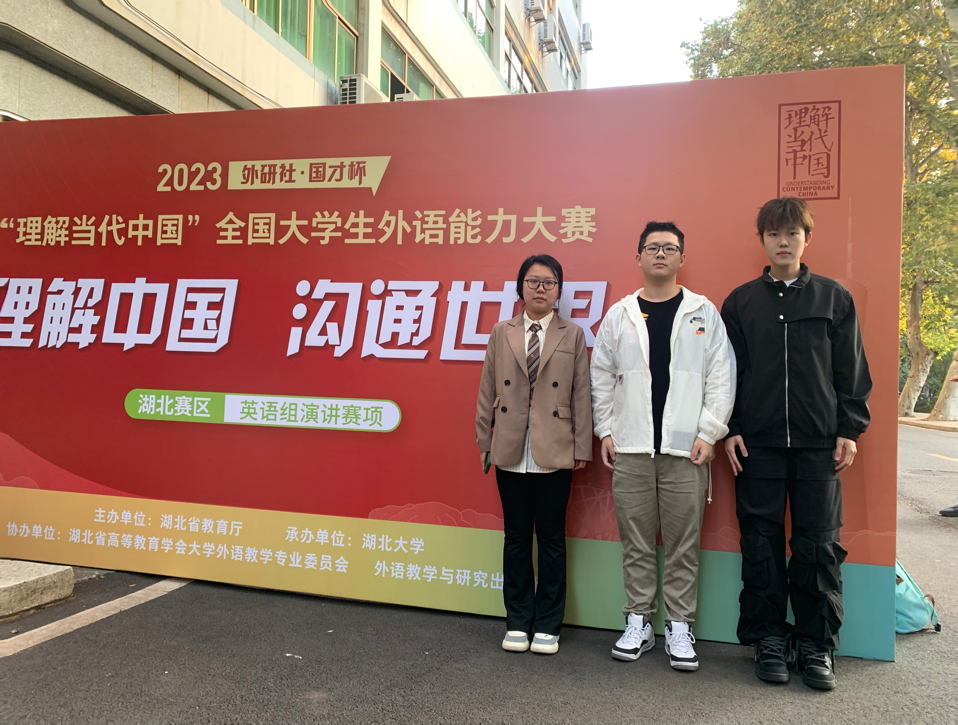 本网讯(通讯员 孙川慧 刘雅馨)2023年10月22日,2023“外研社·国才杯”“理解当代中国”全国大学生外语能力大赛英语组演讲赛省赛在湖北大学拉开帷幕。本次大赛以“理解中国,沟通世界”为主题,引导选手深入领会习近平新时代中国特色社会主义思想的核心要义,理解中国之路、中国之治、中国之理,涵养家国情怀、全球视野,拓展知识广度、思想深度,展现外语能力、跨文化能力、思辨能力、创新能力等综合素养。参与此次比赛的有来自武汉大学、华中师范大学、中南民族大学等高校的200多名优秀学子,我校也有三名学子成功入选省赛。赛前,指导教师孙川慧、陈坦和方海霞老师鼓励学生积极备赛,并指导学生不断加强知识储备。