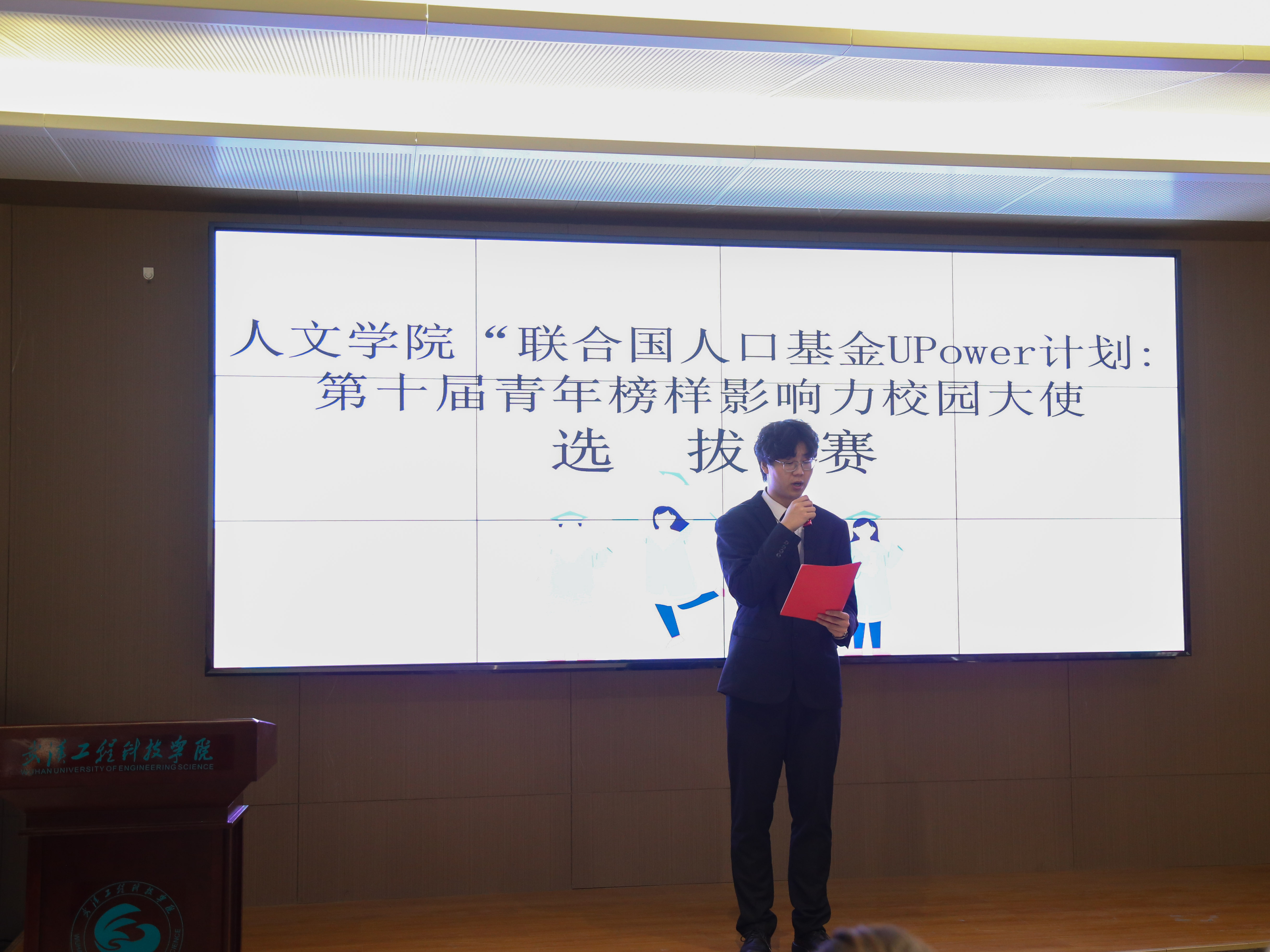 紧接着,35位参赛选手依次用英语进行自我介绍并围绕联合国人口基金UPower主题进行英语演讲。每位选手都在比赛中进行了精彩的展示,展现出了当代青年的青春与活力,充分体现了人文学院学子勇于挑战、追求卓越的良好精神风貌,赢得了台下观众的掌声与鼓励。