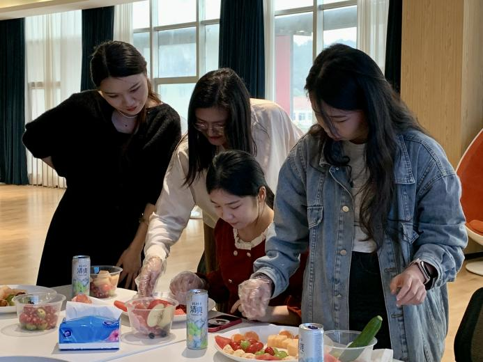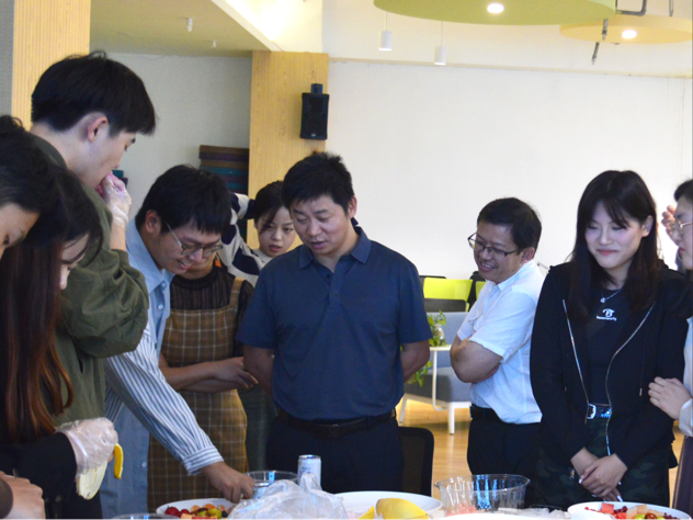 学校领导老师与同学们开展了水果拼盘活动,同学们积极参与到其中,轮流讲述拼盘图案以及寓意,在和谐融洽的氛围中校领导与学院学子共同合影留念。