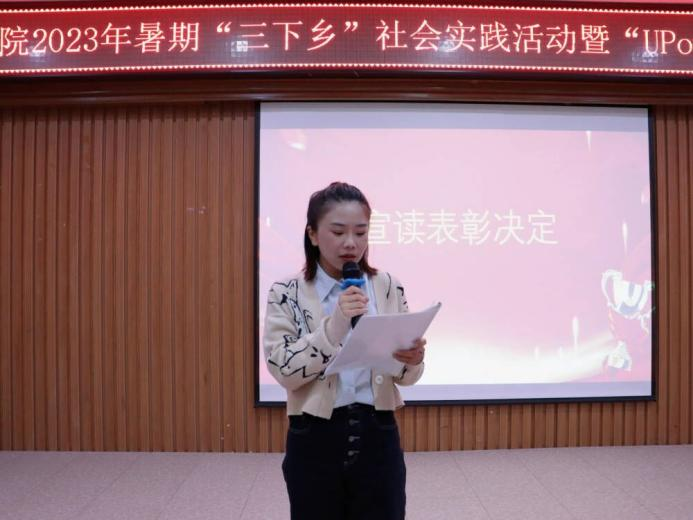 大会开始,人文学院团总支书记郭孟言宣读关于人文学院2023年暑期三下乡社会实践活动的表彰决定。