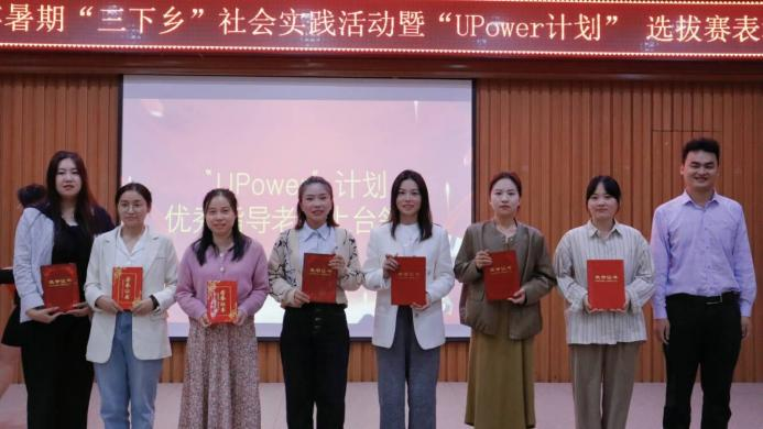 湛正祥为“UPower计划”优秀指导老师:张佳佳、彭祎、郭孟言、曹欣悦、覃晓倩、周楚佳、杨硕、魏妮、王峥颁奖。