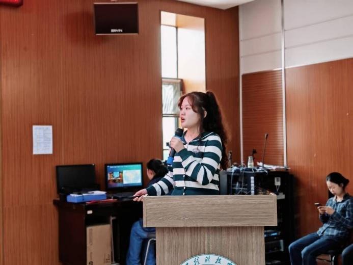 接下来由“三下乡”优秀团队代表小茶苗团队进行展示。她们展示了下乡实践活动的经历,讲述了她们在实践活动中,不仅将家乡的美景做成宣传视频,还协助景区工作人员对景区的卫生进行打扫,通过宣讲等形式向游客传递环保理念,寻访红色文化,参观满山红烈士陵园,并展示了他们的实践成果,向社会传递家乡的声音。三下乡活动结束后,国家级媒体以“汇聚青春力量,共筑美好家园”为主题对她们团队进行了报道。截至目前,本篇报道总阅读量超1.2万,总点赞量近千,取得了一定的社会反响。最后,小茶苗团队将本次实践活动做成微电影进行团队展示。