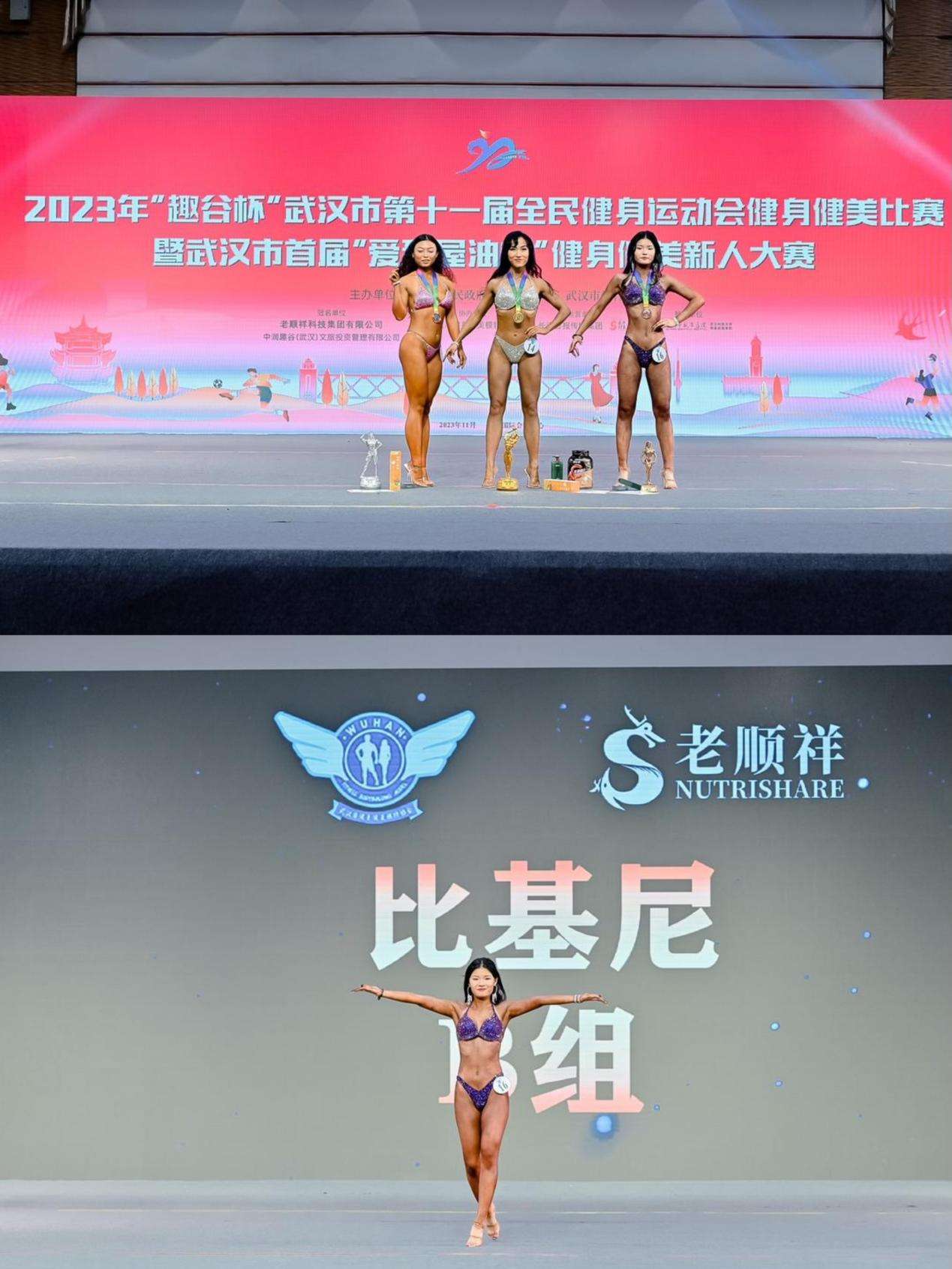 本网讯(通讯员 徐娅妮、张学芬)近日,由武汉市人民政府主办,武汉市体育局承办,武汉市健身健美模特协会协办的2023年“趣谷杯”武汉市第十一届全民健身运动会健身健美比赛暨武汉市首届“爱那屋油杯”健身健美新人大赛在武汉市国际会展中心圆满落下帷幕。此次比赛共有来自全省18支代表队共138名运动员参赛,赛事共设置传统健美、男子健体、男子健身模特、健身比基尼、女子健身模特等五个大项15个组别。我校健身健美代表队12名运动员在张学芬、万丽芳、芦琳三位老师的带领下,参加了本次比赛。