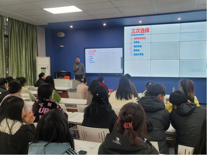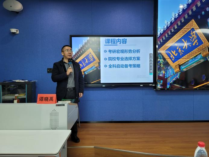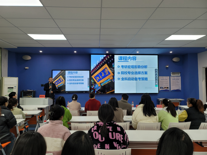 讲座期间,谭晓禹为同学们分享了大量的高校招录信息和备考方法,使同学们对于全国高校的招录情况有了更加充分的认识,大家深刻地体会到合理选择院校和专业对未来发展的重要性并对院校和专业的选择有了明确的目标。谭晓禹对备考科目学习进行了专业的指导,引导同学们制定战术规划,合理安排时间,强调科学备考应当分巩固基础、强化提升、最终冲刺三个阶段进行,让同学们掌握了更加高效的备考方法。