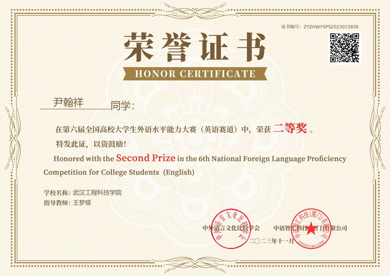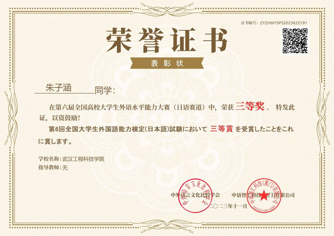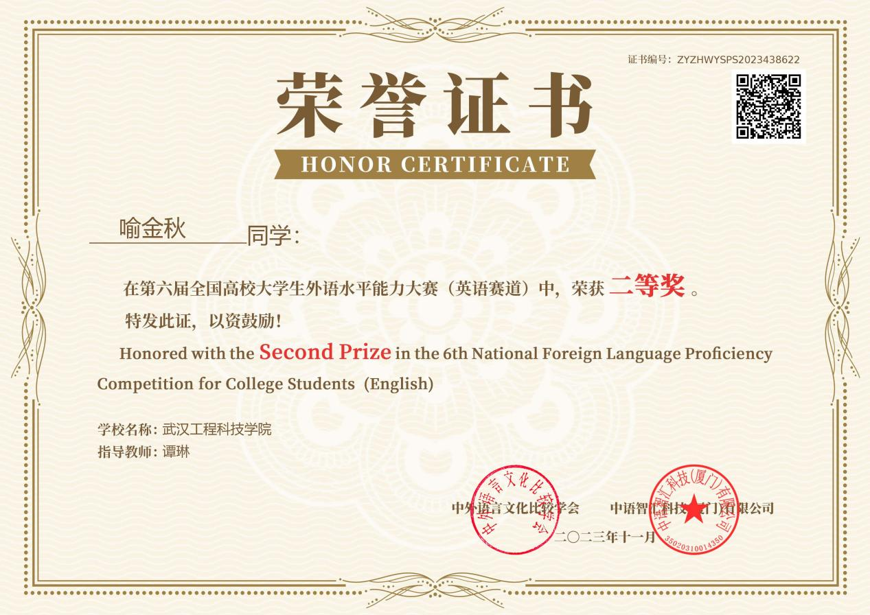 本网讯(通讯员 谭琳)近日,第六届全国高校大学生外语水平能力大赛圆满落幕。大赛由中外语言文化比较学会主办,共分英语和日语两个赛道,旨在通过“以赛促教、以赛促学、以赛促练”,检测学生的外语学习能力和综合水平,帮助学生提高外语学习、应用能力。大赛自9月启动报名以来,吸引了全国各大高校师生的关注,英语赛道吸引了来自全国270余所高校的5万余名学生报名参赛,日语赛道共有来自全国180余所高校的9千余名学生报名。经过初赛、决赛两个环节,最终决出所有奖项,我校进入决赛的选手取得了优异的成绩。其中,英语赛道中荣获二等奖3项,三等奖2项。在日语赛道中荣获二等奖1项,三等奖3项。