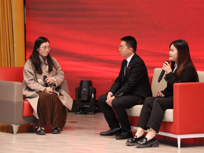 活动进入学生代表互动环节,学生代表们纷纷讲述了自己的成长历程。贾维凤在大学四年里变化巨大,她从大一时的不自信、不敢表现自己到成为入党积极分子,从毫无经验的小白到成为党宣助理。除此之外,她还积极参加社会实践,如参与家乡的第九次团代会、担任湖北省青年志愿者行动促进中心的宣传员。说到这里,贾维凤表示轻舟已过万重山,并畅言在未来要从事基层公务员的理想。赵晨首先表示对王艳老师讲述的内容感触很深,同时对中国目前的航天成果感到自豪。赵晨注意到大多数航天员的背景都很普通,但他们都通过不懈的努力而达到了不错的成就。赵晨在竞选入党名额时也是如此,持之以恒,进而成功。