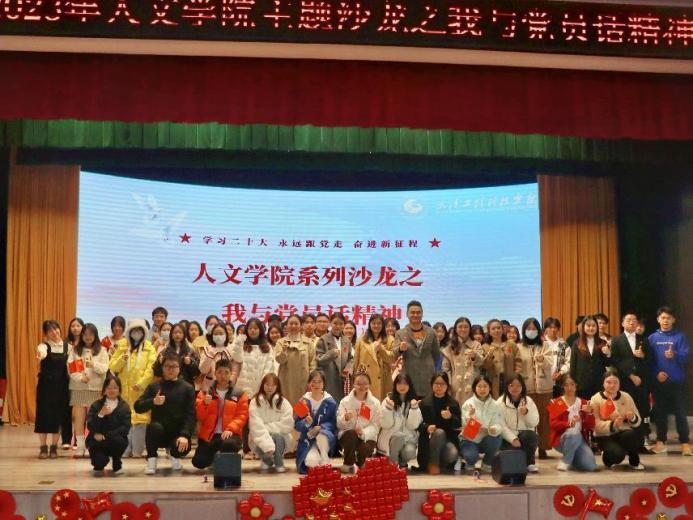 活动最后,广大师生们共同站上讲台合影留念。至此,本次沙龙活动正式落下帷幕。该活动充分诠释了载人航天精神,也展示了广大党员奋发有为、实干担当的精神风貌,激励我们向党看齐,发扬红色传统,传承红色基因,有利于赓续共产党人精神血脉,更好迈向祖国建设新征程。