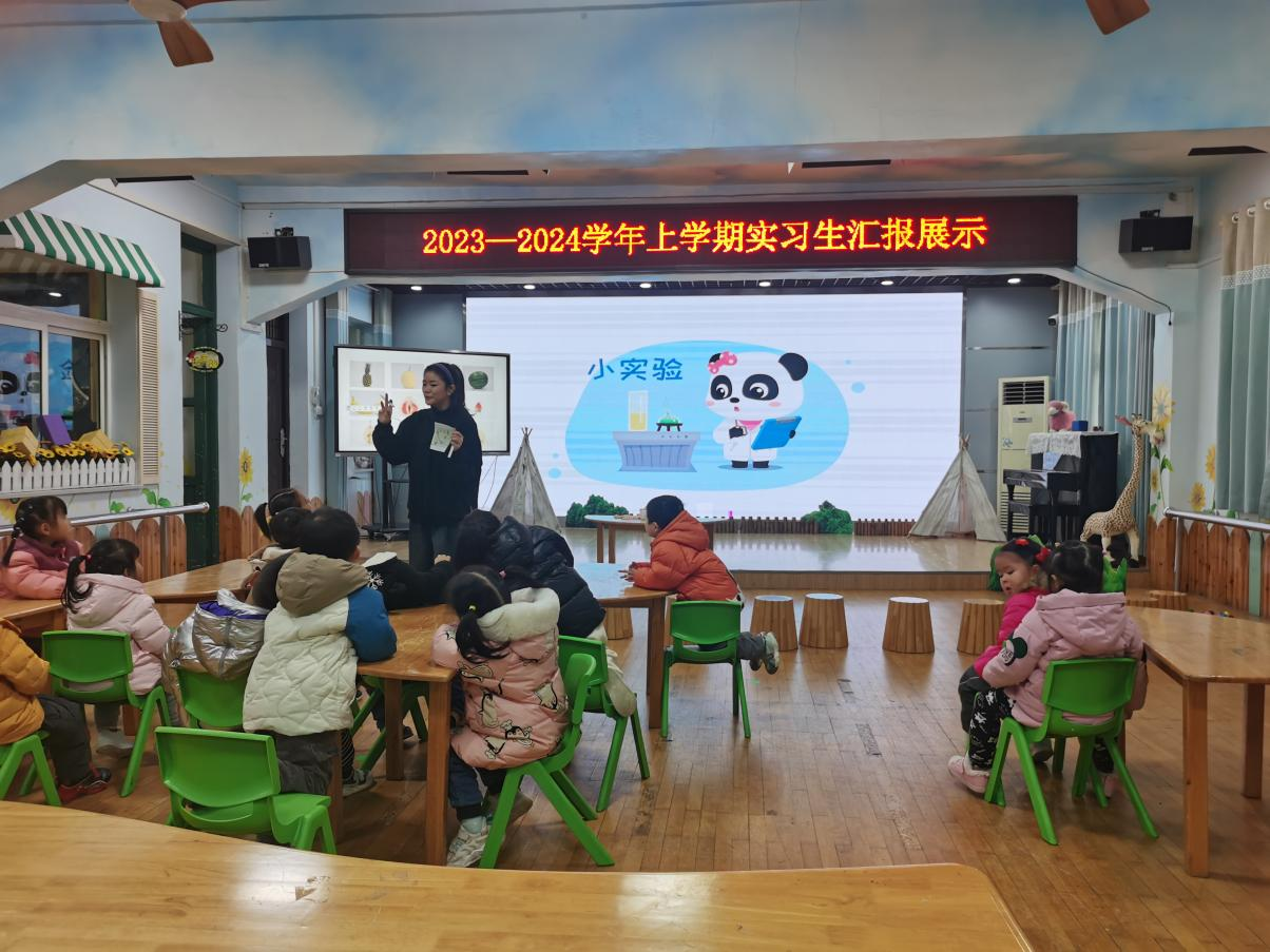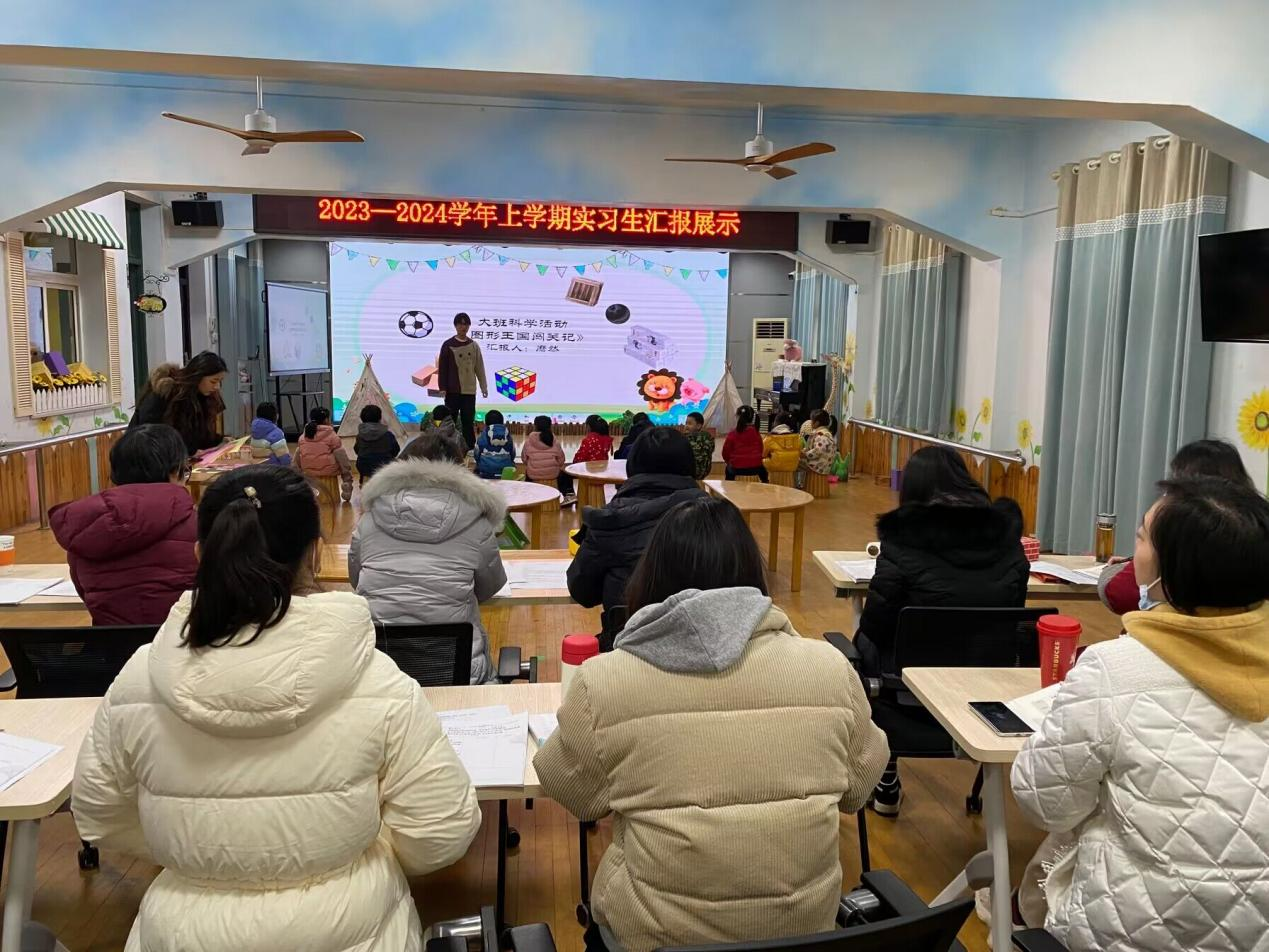 本网讯(通讯员 周艳)2023年12月20日上午,人文学院2020级学前教育专业六名学生在武昌区康乐幼儿园进行了实习汇报,人文学院教育系主任汝利娜、学前教育专业负责人王雄燕、周艳老师和幼儿园指导老师参加了此次汇报课,至此,为期三个月的实习活动圆满落幕。