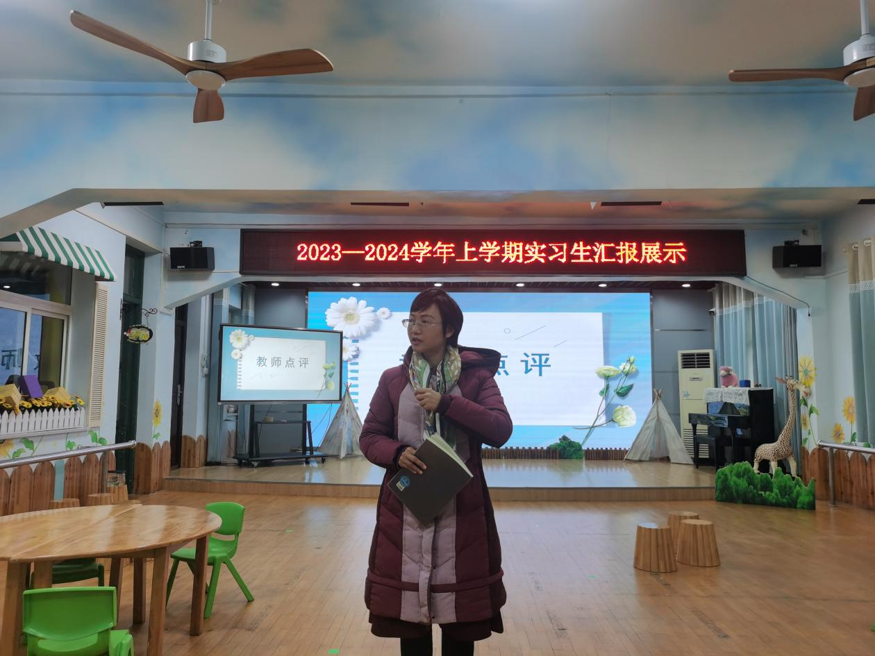 实习汇报结束后,幼儿园指导教师、王雄燕老师分别对六名学生的公开课进行了总结点评。他们对学生的教学设计、组织、实施等方面给予了高度评价,并针对课堂教学中存在的问题提出了宝贵的意见和建议。