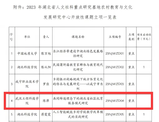 这一年的步伐,我们走得有力量。人文学院教学工作扎实推进,科研工作成效初显。人文学院教学委员会组织各系主任、专业负责人和部分教师制订了面向产出的教学管理与教学质量保障制度,现已初步完成了工作任务,共制订相关制度近17个。2023年,人文学院科研工作取得了良好成绩;成功获批校级以上科研立项20余项,其中,湖北省教育厅哲学社会科学研究项目5项,教育部高校思想政治工作创新发展中心开放课题1项,湖北省人文社科重点研究基地开放课题13项,中国民办教育协会年度规划课题2项。同时,产学研合作不断加强,服务企业横向课题1项,获得横向课题经费5万元。学院教师发表教科研论文76篇,其中核心期刊6篇,权威期刊1篇,会议论文3篇(国际1篇,国内2篇),参加学术会议51次;部分老师参加重要学术会议并做报告,如体育系教师刘湲湲的论文《跨界合作与新时代校园体育发展:三方共育模式的构建与应用》在中华人民共和国第一届全国学生(青年)运动会科学论文报告会入选专题报告。