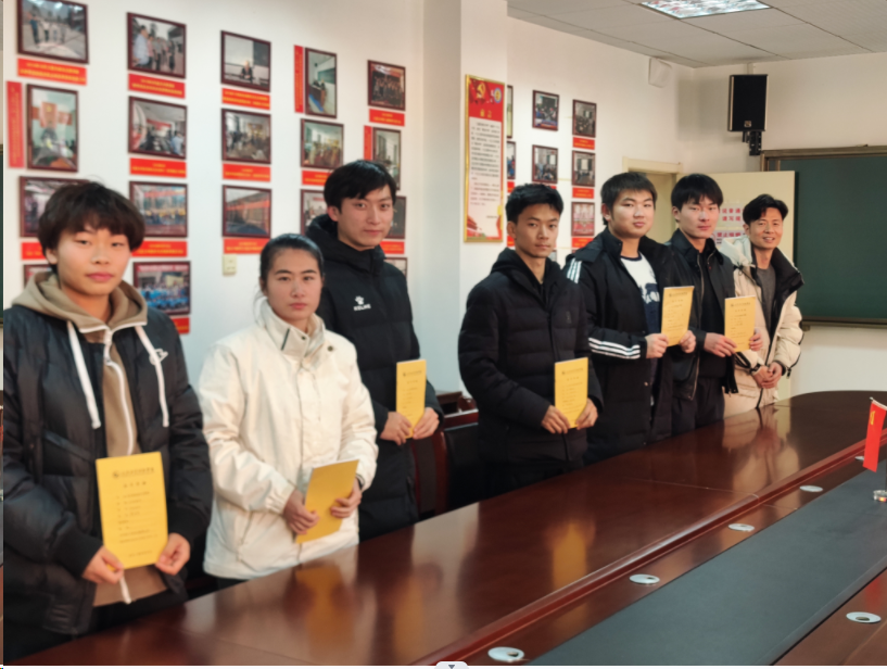 人文学院郭院长给六位实习生颁发实习指导手册。