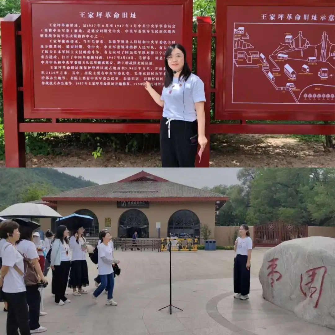 在杨家岭革命旧址前,教师汪玲丽结合毛泽东思想和中国特色社会主义理论体系概论课的教学内容开展实景教学,她带领教师们重温革命岁月,回顾抗战历史。参观途中,教师们激情澎湃,齐声合唱《东方红》,现场气氛高涨,点燃了大家对伟人的追忆与怀念之情。