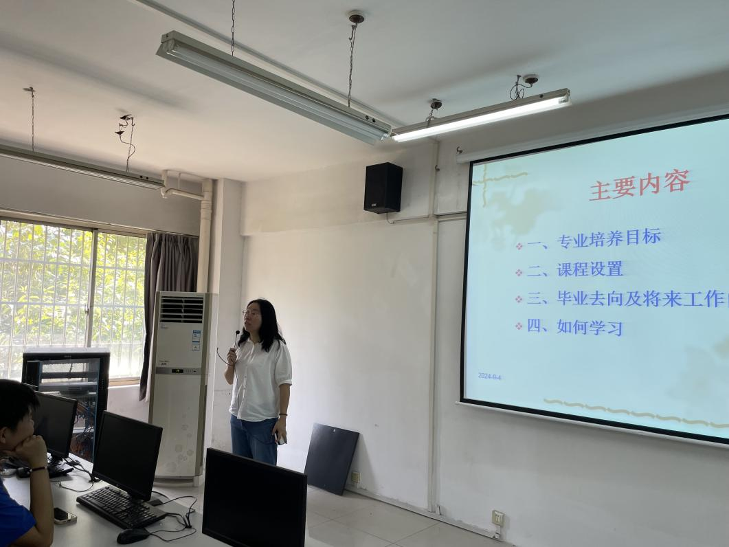 此外,辅导员孙琳老师就学生的日常管理、奖助政策、心理健康服务、社团活动等方面进行了全面的介绍。孙老师强调,学校将为新生提供全方位的支持和服务,帮助他们尽快适应大学生活,实现个人成长和学业进步。