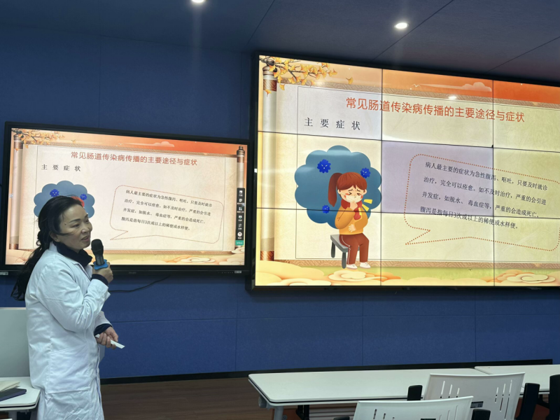 活动伊始,本次主讲人校医务室方兰珍医生首先进行了自我介绍,接着从秋冬季最常见的肠道传染病及其传播途径与症状、秋冬季最常见的呼吸道传染病及其传播途径与症状、怎样预防呼吸道传染病等方面向同学们介绍了秋冬季预防疾病的重要性。