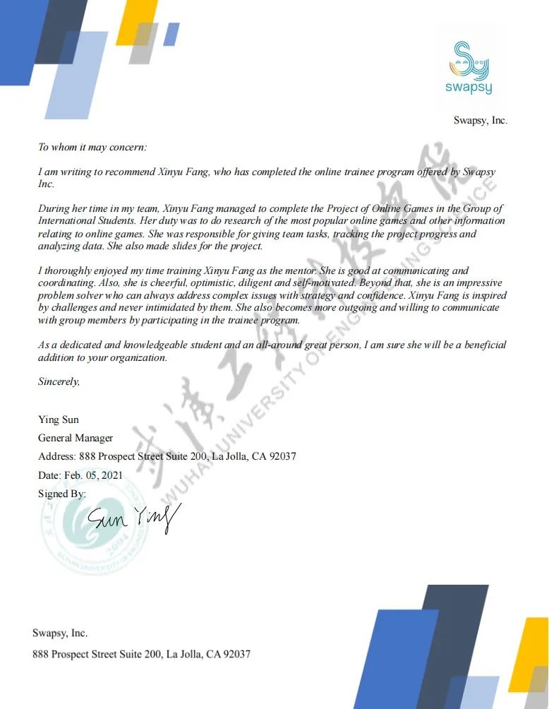 完成相关课程后表现优秀的学生将有机会拿到来自海外企业高管、名校教授提供的推荐信,助力今后升学与职业发展。