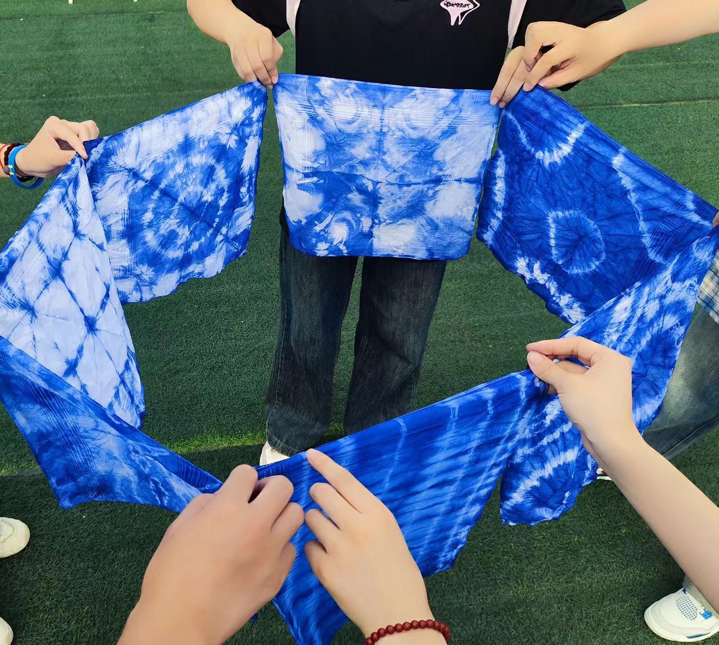 色彩在布帕上尽情舞动。洗不掉的是蓝色,抹不去的是情结。扎染之美,美在随心所欲,美在独一无二,在拆开绳子前,我们永远不知道将是什么色彩与图案,一如各自生命的独特绽放。