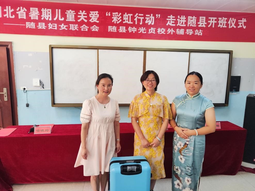 武汉工程科技学院学生工作处心理健康教育中心副主任刘洁、武汉工程科技学院学生工作处心理健康教育中心专职教师潘杨璐、随县妇联二级主任科员艾文和“随县钟光贞校外辅导站”站长喻晓玲出现参加此次开班仪式。