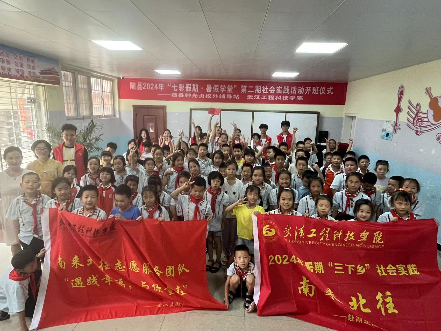 (通讯员 朱健豪)为深入学习宣传贯彻党的二十大精神、习近平总书记关于儿童和儿童工作的重要论述。7月17日——7月31日,武汉工程科技学院暑期“三下乡”社会实践“南来北往志愿服务团队”携手随县厉山镇中心小学“钟光贞校外辅导站”为孩子们带来第二期“七彩假期·暑假学堂”。