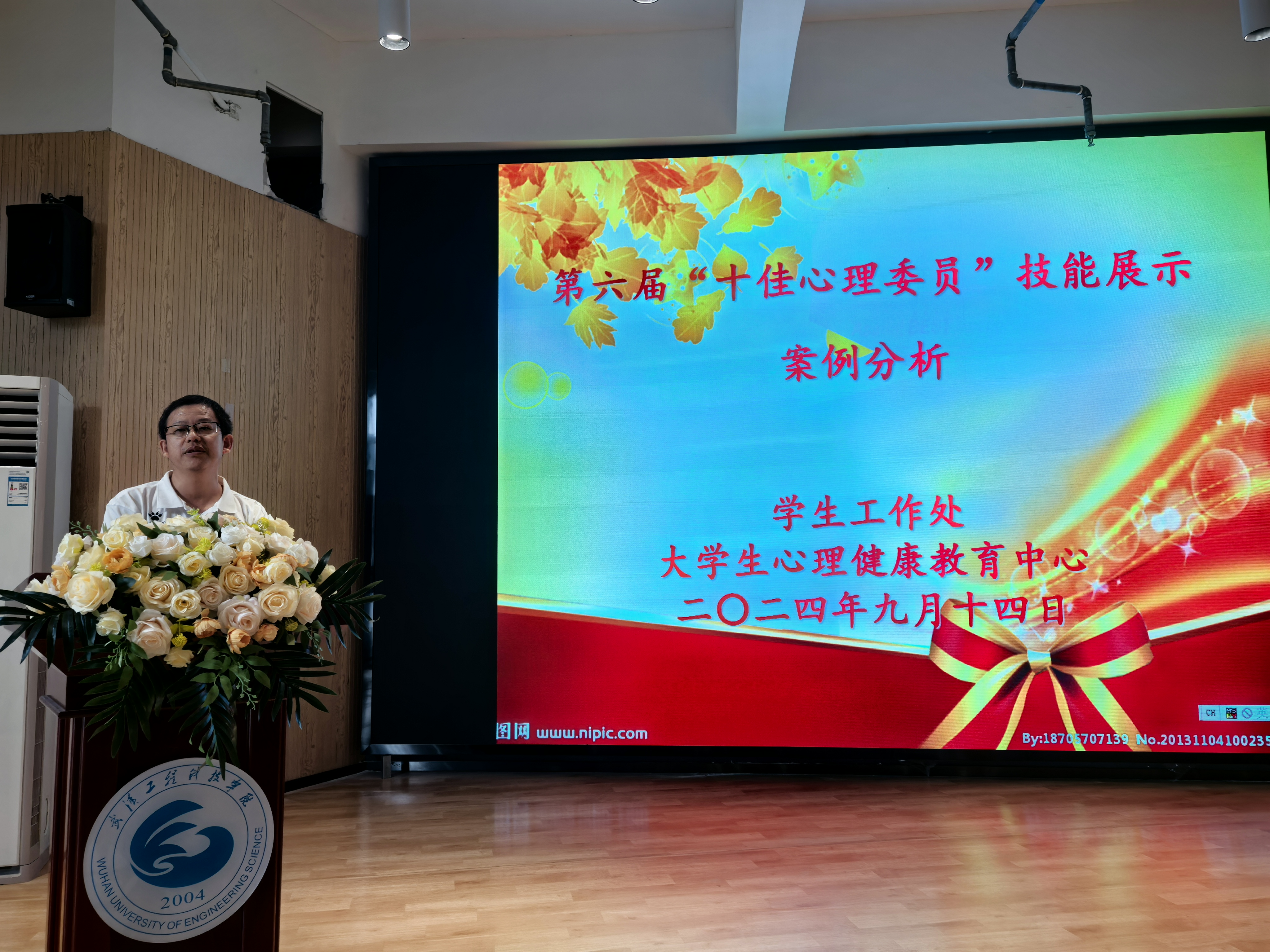 为进一步提高我校心理委员的能力素质,增强学生朋辈互助能力,促进我校心理委员队伍建设,提升心理委员的专业知识和实践能力,促进其更好地发挥自助、互助、助人的积极性和主动性,2024年9月14日上午,大学生心理健康教育中心举办武汉工程科技学院第六届“十佳心理委员技能展示活动”。大学生心理健康教育中心全体专职老师以及各学院心理专干担任本次活动评委,活动由大学生心理健康教育中心杨梅老师主持。