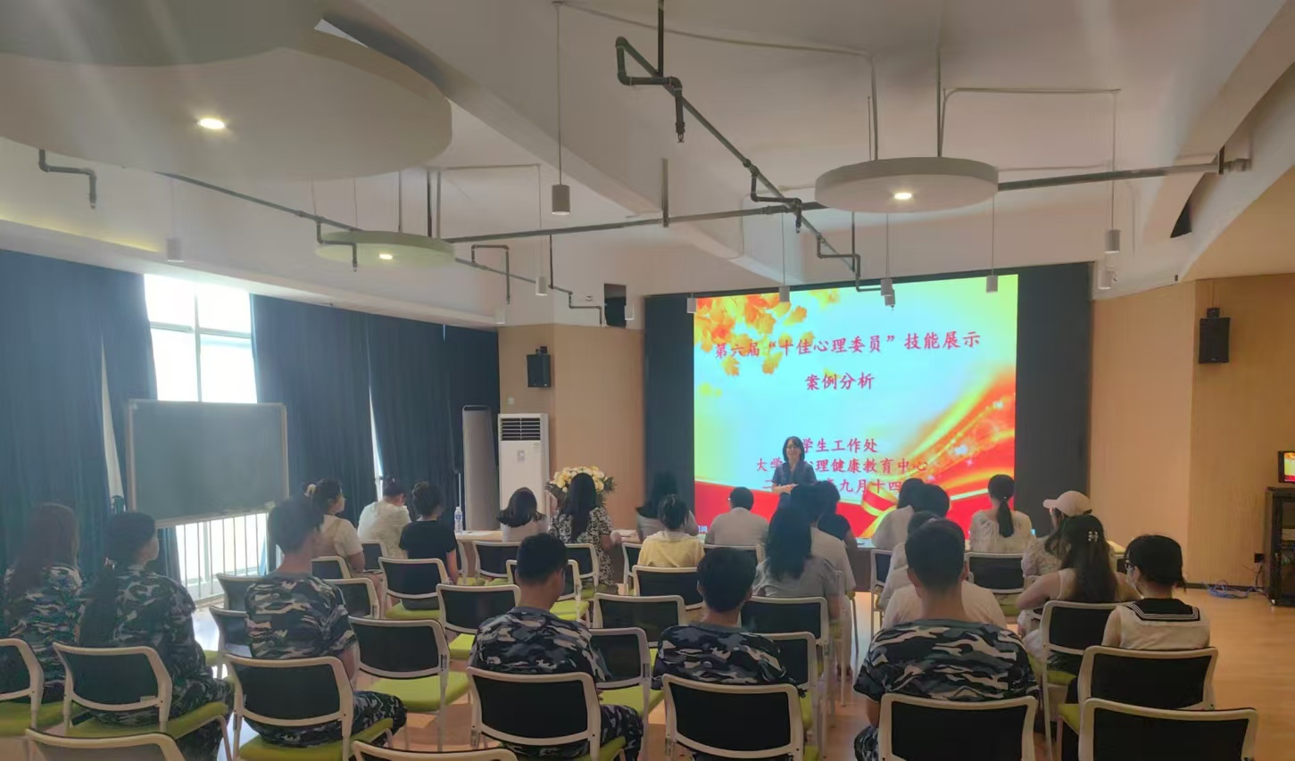技能展示活动包括两个环节:风采展示和案例分析。风采展示环节中,来自全校各学院的十三名同学依次通过ppt,展示他们在职期间对心理健康知识学习与宣传、对心理委员工作的认识,任职期间组织的各种心理健康教育活动以及对班级同学的帮助,及对今后工作的展望。案例分析环节中,心理委员们对各自抽取的案例进行分析,案例主要涉及大学生宿舍矛盾、恋爱、适应、生活应急事件及学习问题时,心理委员将结合所学知识以及工作经验,如何帮助同学应对困惑,如果问题超出自己解决范围,应及时向辅导员、心理健康教育中心报告,寻求专业帮助。