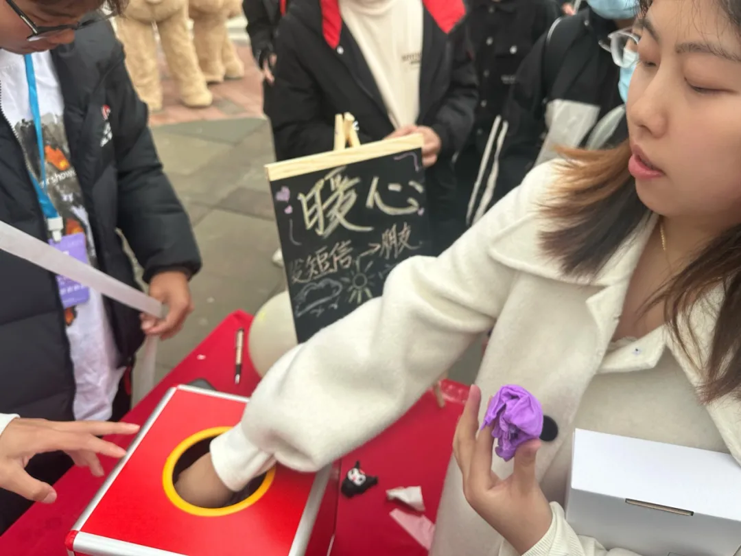 同学们从五彩斑斓的抽奖箱中抽取彩纸,阅读上面的温馨寄语,再将这份正能量传递给身边的每一个人。这份传递,不仅拉近了心与心的距离,更让爱与希望在我们之间流淌。