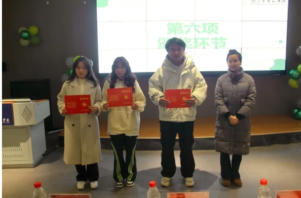 程淑玲老师上台为赵冰雪、汪洋、邓新宇同学颁发二等奖。
