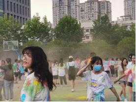 在彩虹大作战环节中,每位参赛人员可以随意向对方抛洒彩粉,以表示祝福。现场状况呈现,五彩纷呈的景色,大家在漫天“彩烟”中激情开跑,每位同学身上、脸上亦是五彩缤纷的图案,整个过程充满了欢声笑语。补给点工作人员表明本次彩跑活动所使用的彩粉均由玉米淀粉制成,对人体和环境无害。活动结束后,大家移步图书馆进行大合照拍摄环节。